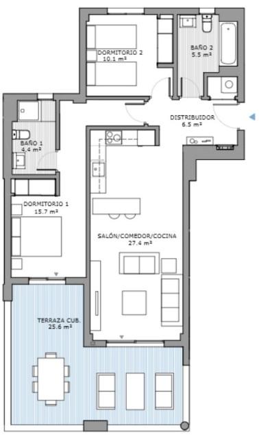 Appartement, Meublé: optionnel, cuisine équipée, Underground parking, piscine communautaire, Jardin: Communauté avec piscine, Orientation: Sud