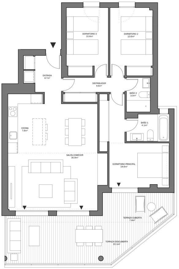 Appartement, non meublé, cuisine équipée, Underground parking, piscine communautaire, Jardin: Communauté, Orientation: Ouest