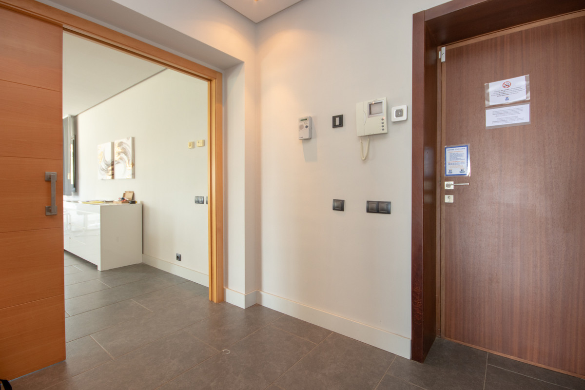 This stylish and modern villa is distributed over three levels - on the ground floor (entrance level) there is a large lounge with an offset dining area. The lounge is furnished with a large L shaped sofa, 44" TV and and fireplace. The dining area is furnished with an extending dining table with eight dining chairs. Both the lounge and dining area lead out to the beautifully manicured garden, terrace and pool area, complete with sun beds and furnished with a large dining table and chairs, lounging area and gas BBQ, all set within a mature and beautifully maintained garden with olive trees and many tropical plants. The large modern kitchen is fully equipped and also leads out onto the spacious covered terrace area . On this level is one of the spacious bedrooms fitted with a super king size bed plenty of wardrobe space, direct access to the terrace area as well as a very spacious en suite bathroom with both bath and walk in shower. Also on this floor is a guest WC. Take the stairs to the upper level and there you find three further bedrooms. The master bedroom suite is beautifully furnished with a super king size bed and offers a small sitting room area furnished with a chaise lounge and another fireplace. There is also a separate large walk in wardrobe area. Both the guest bedrooms are again very spacious, stylishly furnished with two single beds, both have extensive closet space, large en suite bathrooms and access to the upper terrace. Downstairs to the basement level there is a separate utility room and the internal access to the garage. Here you also find an underground garage with space for at least three vehicles. The villa has a full security system, vented hot and cold air conditioning throughout and all bedrooms have access to a terrace, each with incredible views. An absolute must view villa with some of the best views you will find on the southern coast of Spain!