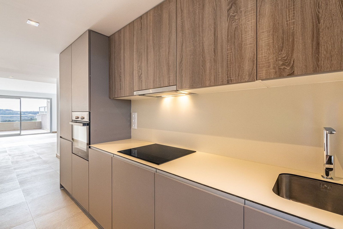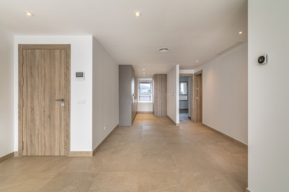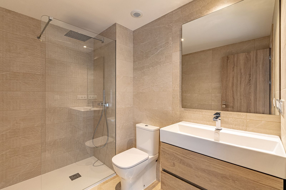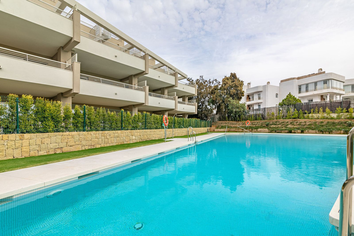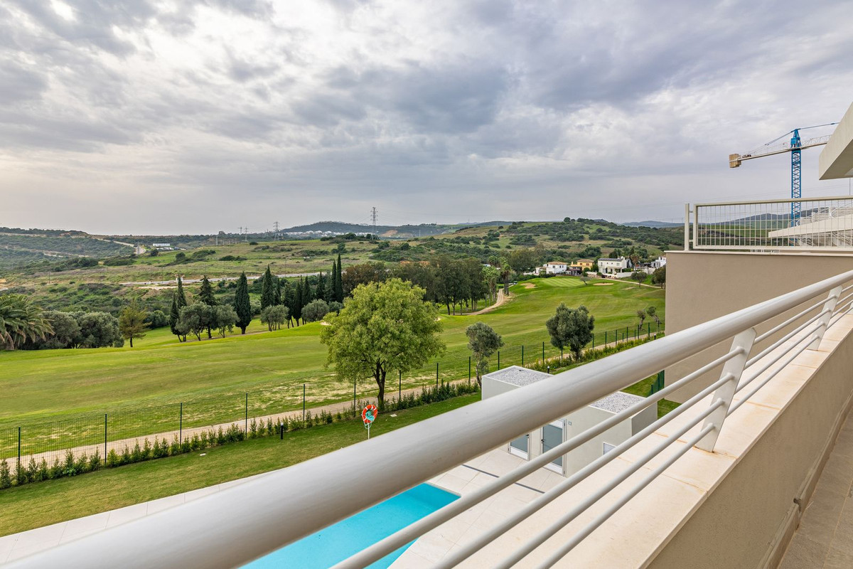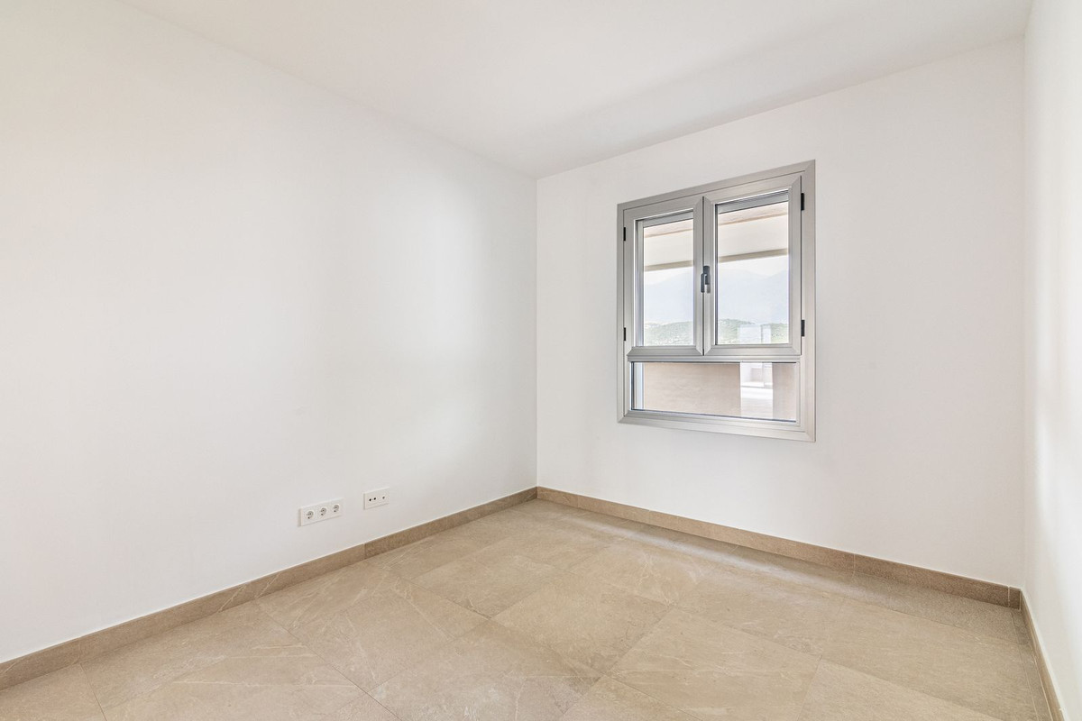 Penthouse located in Estepona Golf within the newly built Sunny Golf complex. The community features a swimming pool and outdoor parking, with one parking space included. It offers 2 bedrooms and 2 bathrooms, one of which is en-suite. There's a terrace on the main level and a rooftop terrace upstairs, enjoying sun all day.The bedrooms are generously sized with built-in wardrobes and electric blinds. Both bathrooms are fully fitted with showers and feature attractive material choices in warm, natural colors. The open-plan kitchen flows into the living room, creating an open feel and excellent social areas, with the possibility of adding more workspace or a breakfast bar.