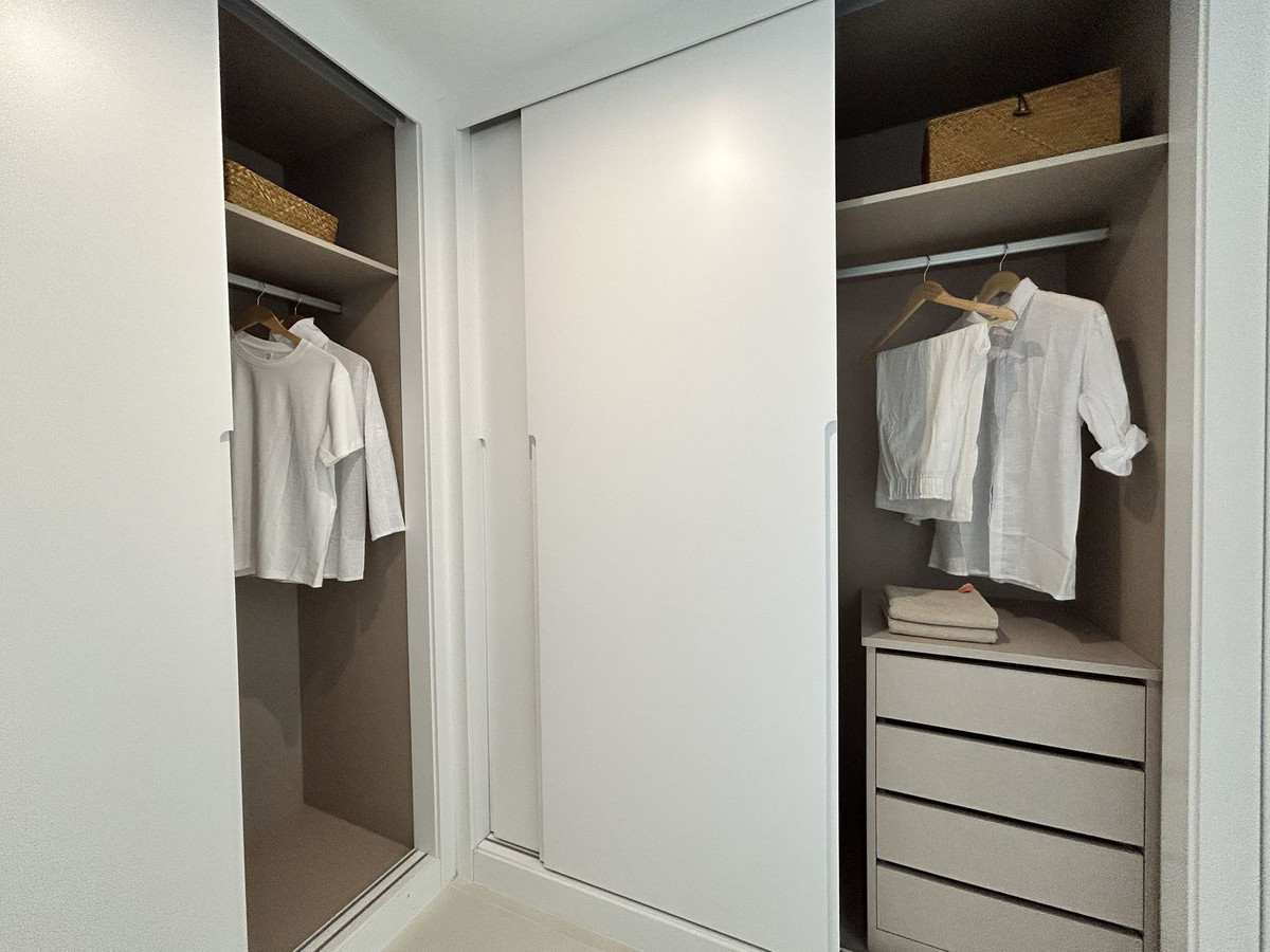 It features a home automation system and smoke detectors, as well as Jung appliances. The modern and functional kitchen features high and low cabinetry, a Silestone countertop, and paneled appliances with an A energy rating (hob, oven, microwave, extractor hood, refrigerator, dishwasher, and washer-dryer). The bathrooms feature wall-hung toilets, extra-flat shower trays with screens, and the master bathroom features a double sink with integrated cabinetry.