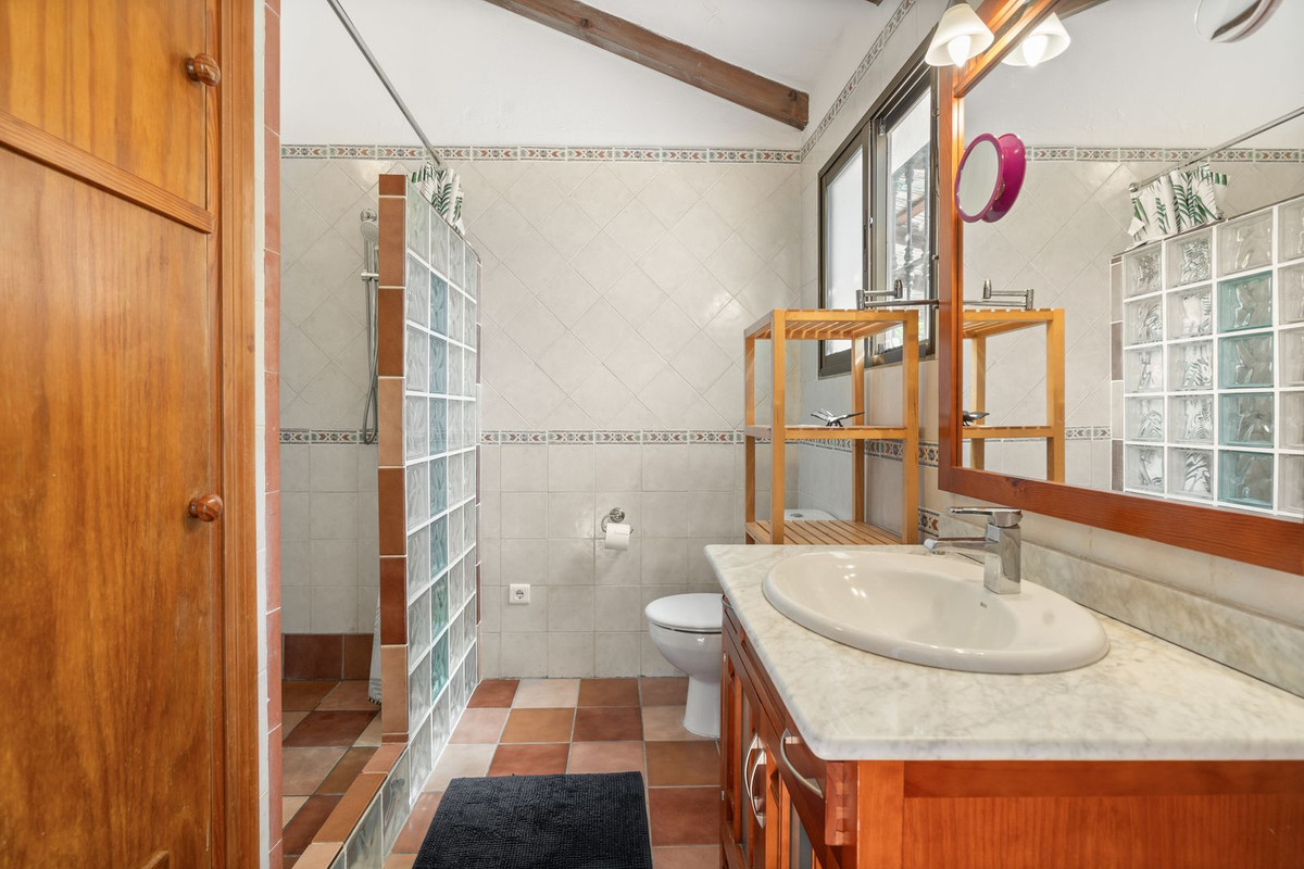 Cette villa de plain-pied, à l'agencement pratique et fluide, conserve le charme authentique d'une maison de campagne. Des détails tels que des plafonds voûtés et à poutres apparentes, des pierres rustiques et du fer forgé décoratif apportent chaleur et personnalité. Une suite d'invités séparée, accessible par un escalier extérieur depuis le patio, assure l'intimité des visiteurs. L'élégante allée, les oliviers, les points d'eau et le verger créent l'atmosphère d'une finca miniature.