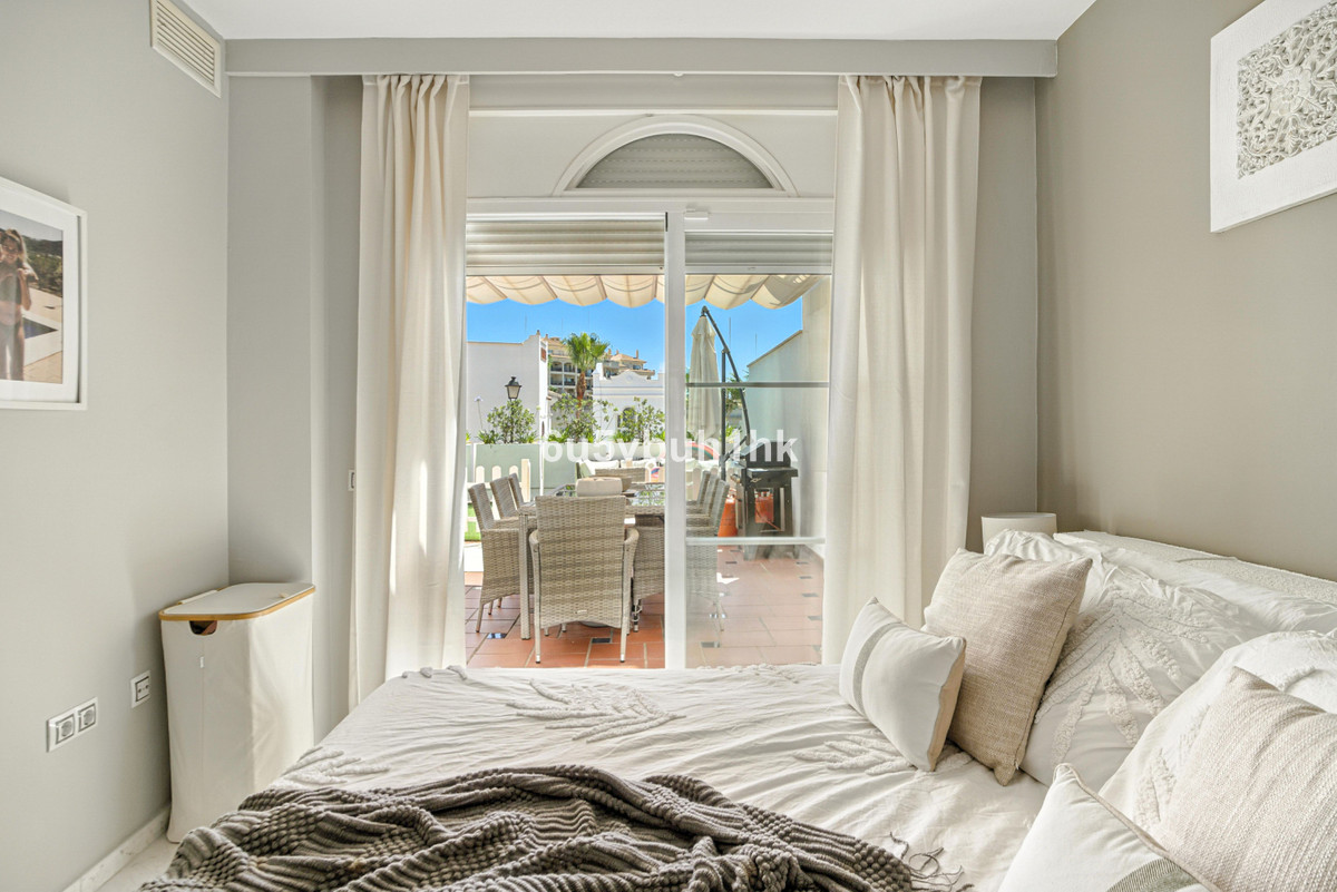 Au rez-de-chaussée se trouvent des toilettes invités et la chambre principale avec salle de bains attenante et accès direct à la terrasse. L'étage supérieur comprend un palier lumineux, une salle de bains complète et deux chambres, toutes deux avec accès à une terrasse offrant une vue partielle sur la mer.
