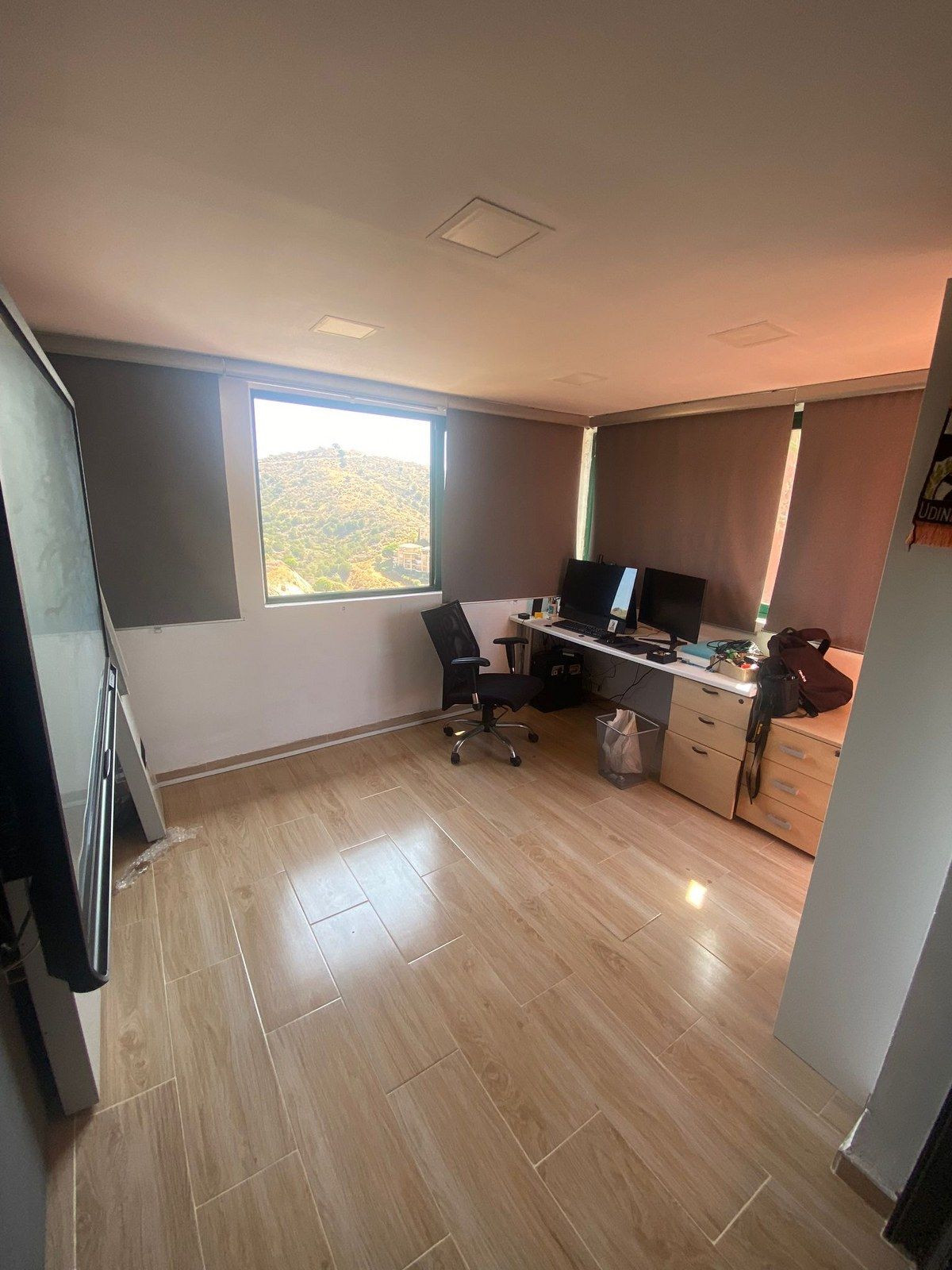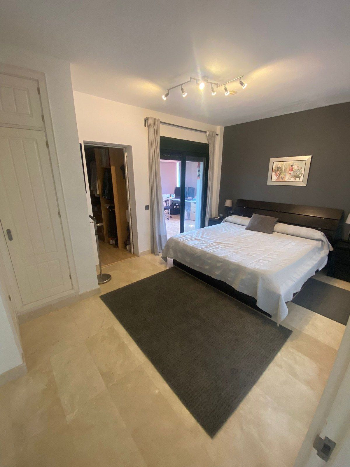 One level up you will find the further 2 double bedrooms both with private en-suites and private balconies. The master bedroom has a walk in wardrobe and an extra room attached that the owner has made his office (used to be an open terrace, the owner enclosed to make an office but it could be opened again.
