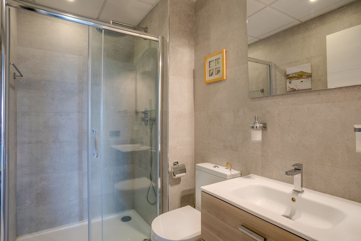L'aile nuit de l'appartement comprend quatre chambres doubles spacieuses, toutes équipées de placards et de volets roulants électriques. La suite parentale dispose d'une élégante salle de bains privative, tandis que deux autres salles de bains modernes desservent les autres chambres.
