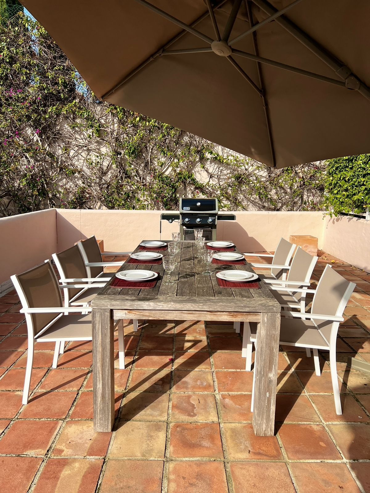 L'une des caractéristiques les plus remarquables de la propriété est la magnifique terrasse de 140 m², joliment aménagée et divisée en trois zones distinctes, parfaites pour se détendre, dîner ou se divertir en plein air.