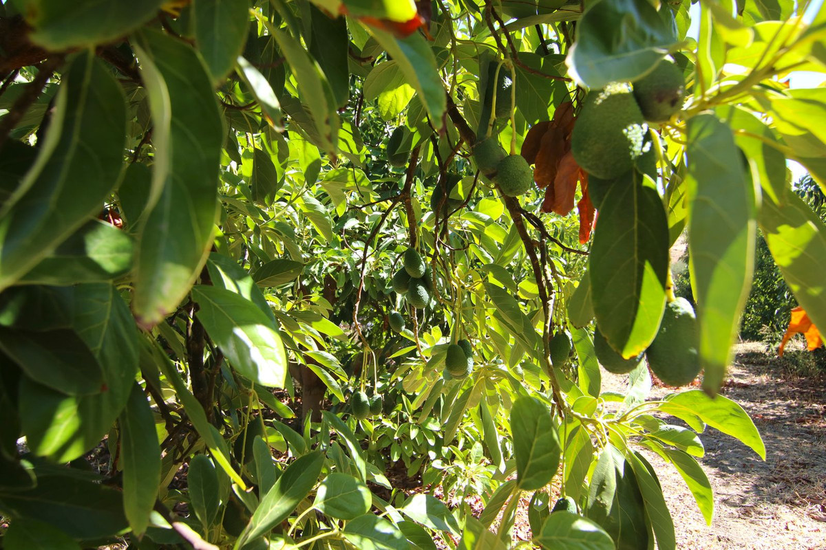 Terre agricole irriguée avec avocatiers et orangers en pleine production.