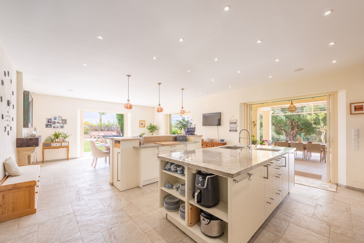 Conçue pour capter la lumière naturelle, la villa, grâce à son aménagement ouvert, crée une sensation d'espace et de liberté. La cuisine s'ouvre harmonieusement sur la véranda couverte et la salle à manger extérieure, idéale pour recevoir ou profiter de soirées paisibles sous le ciel de Sotogrande.