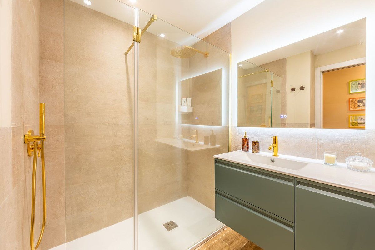 GROUND-FLOOR APARTMENT WITH LARGE TERRACE AND TOURIST LICENSE NEAR THE SEA. Privileged location in a charming Mediterranean-style complex, just 200 m from the beach and only a 5-minute drive from Estepona and the vibrant Duquesa Marina, where you’ll find all kinds of services, restaurants, and leisure options. This beautiful ground-floor apartment stands out for its brightness, thanks to its southeast orientation, and for its magnificent newly renovated terrace, featuring glass curtains, an outdoor kitchen area, and elegant parquet flooring that adds warmth and style.