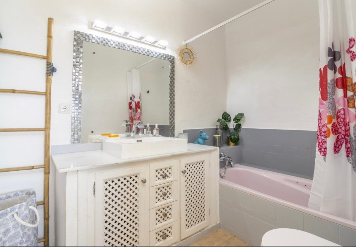 The villa features 4 spacious bedrooms and 4 bathrooms, 3 of which are en-suite, offering privacy and comfort for the whole family or guests. The living area includes a cozy living room with a fireplace, dining area, and several terraces, both covered and uncovered, ideal for relaxing or entertaining. The accommodation is in excellent condition, fully furnished and equipped with a fully fitted kitchen, as well as a laundry area and guest toilet.