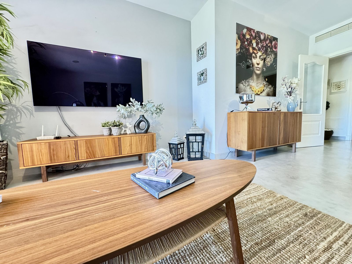 This beautiful ground-floor apartment boasts fabulous views of the sea and golf courses. Located in the exclusive Royal Flamingos community, next to the 5-star Villa Padierna Hotel, it features a master bedroom with an en-suite bathroom, a second bedroom with a separate bathroom, and a fully equipped kitchen with a utility room.