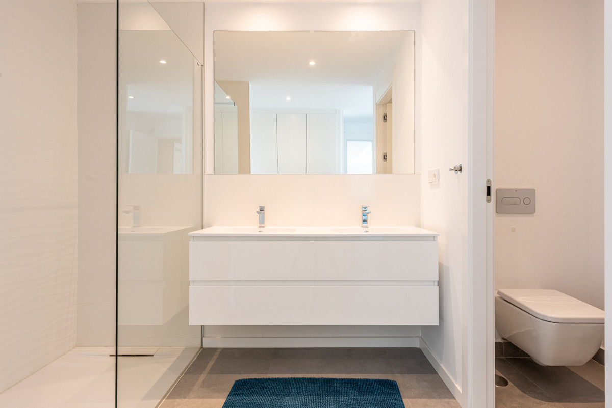 Cet appartement offre deux chambres spacieuses et deux salles de bains élégantes, dont une luxueuse salle de bains attenante à la chambre principale – un véritable havre de paix et de détente. Les deux chambres donnent directement sur la terrasse, accentuant ainsi la sensation d'espace et la connexion avec l'extérieur.