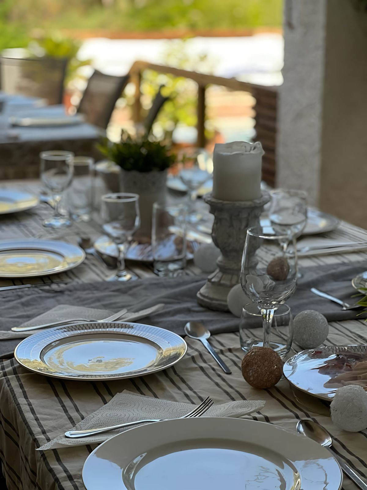 Plusieurs terrasses couvertes et ouvertes (30 m²) offrent les endroits idéaux pour dîner en plein air ou se détendre tout en profitant de la vue sur le magnifique jardin et la piscine privée.
