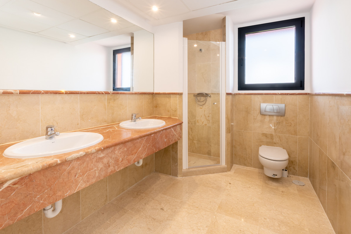 Ses deux chambres spacieuses ont été conçues pour une détente absolue : la suite parentale dispose d’une salle de bains et d’un dressing, tandis que la seconde chambre bénéficie d’une salle de bains complète. Le tout est sublimé par des sols en marbre, des finitions haut de gamme et des placards intégrés qui confèrent à la fois ordre et élégance.