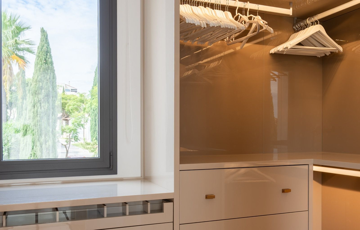 Le premier étage comprend deux chambres supplémentaires, dont la luxueuse suite parentale avec deux dressings et une grande salle de bains équipée d'une douche à l'italienne et d'une baignoire îlot. Les deux chambres donnent accès à une terrasse privée offrant une vue panoramique sur la mer, le golf, La Concha et le paysage environnant.