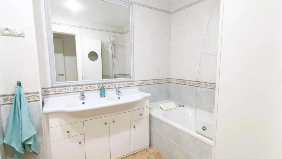 Beautiful, bright, south-west facing ground floor apartment with a large terrace and private gardens. Completely renovated, it features two bedrooms and two bathrooms, a swimming pool, and communal gardens with a bar open during peak season. Garage and storage room included