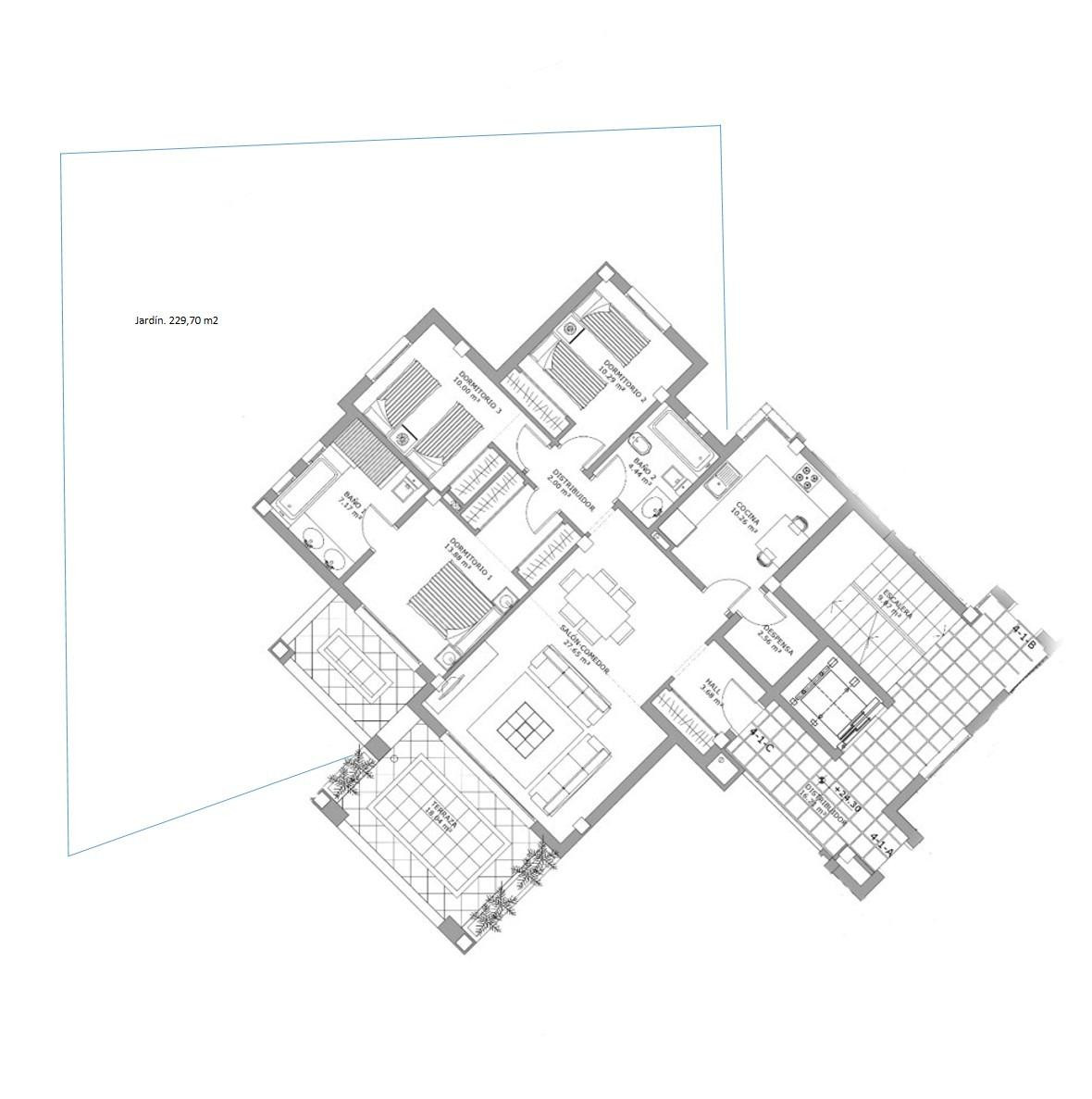 Profitez du soleil andalou sur deux terrasses totalisant 23 m² et un jardin privé de 229 m², revêtu de carreaux de céramique imitation bois – l’endroit idéal pour se détendre, se réunir ou profiter de moments en plein air.