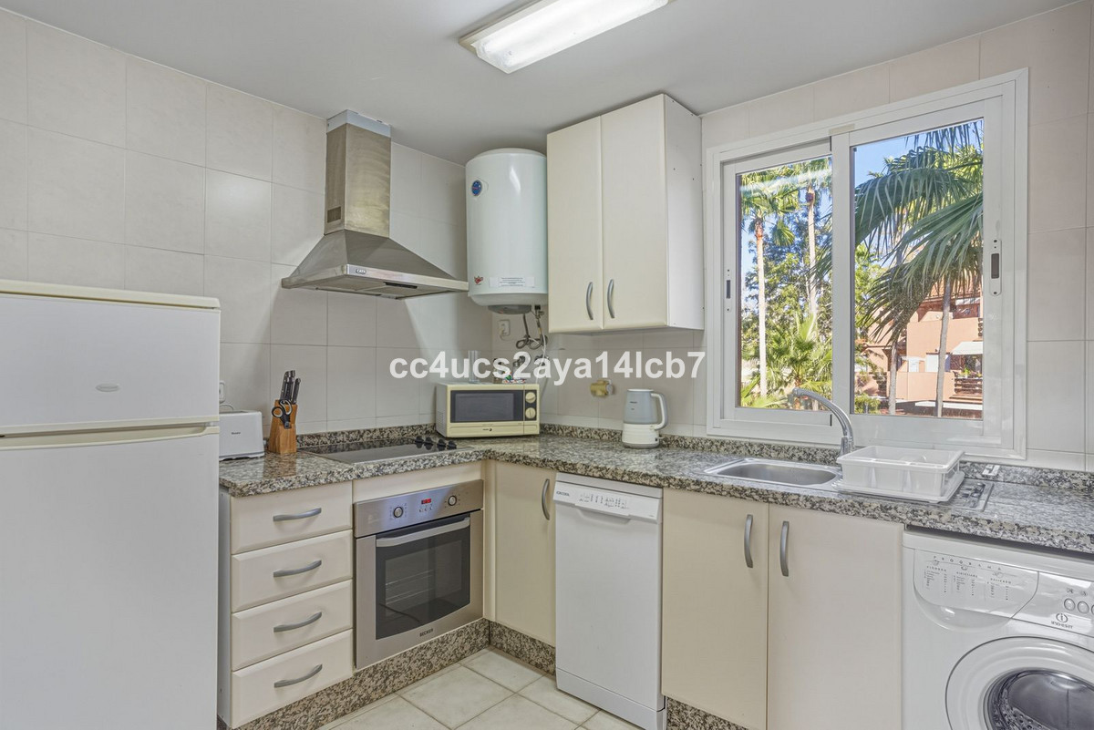Située au sein d'une résidence sécurisée et fermée, la propriété bénéficie d'un cadre paisible à quelques pas de la plage, des chiringuitos locaux et de la promenade côtière, tout en étant à seulement quelques minutes en voiture d'Estepona et du port de plaisance de La Duquesa.