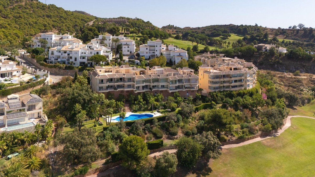 Magnifique duplex à Alhaurin Golf, offrant une vue exceptionnelle sur le parcours et en parfait état. Spacieux, il se compose d'un vaste séjour-salle à manger avec cheminée, s'ouvrant sur une superbe terrasse entièrement vitrée offrant une vue spectaculaire sur le golf. On y trouve également une grande cuisine entièrement équipée, deux chambres doubles (dont une avec salle de bains privative et accès direct à la terrasse), ainsi qu'une deuxième salle de bains. À l'étage, une troisième chambre, une autre salle de bains et un second salon d'été, idéal pour les réunions de famille, constituent un atout supplémentaire. De là, on accède à une belle terrasse avec espace barbecue et une vue panoramique à 360°. Un parking, un cellier, une piscine et des jardins communs complètent ce bien. Une propriété aux multiples possibilités et au fort potentiel.