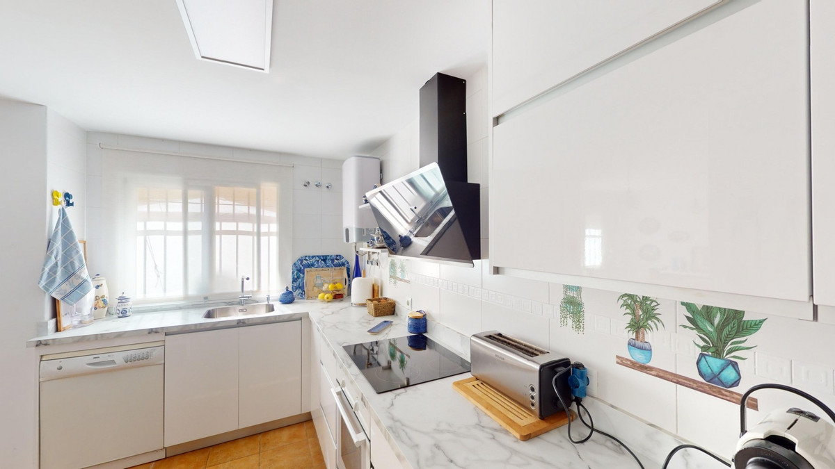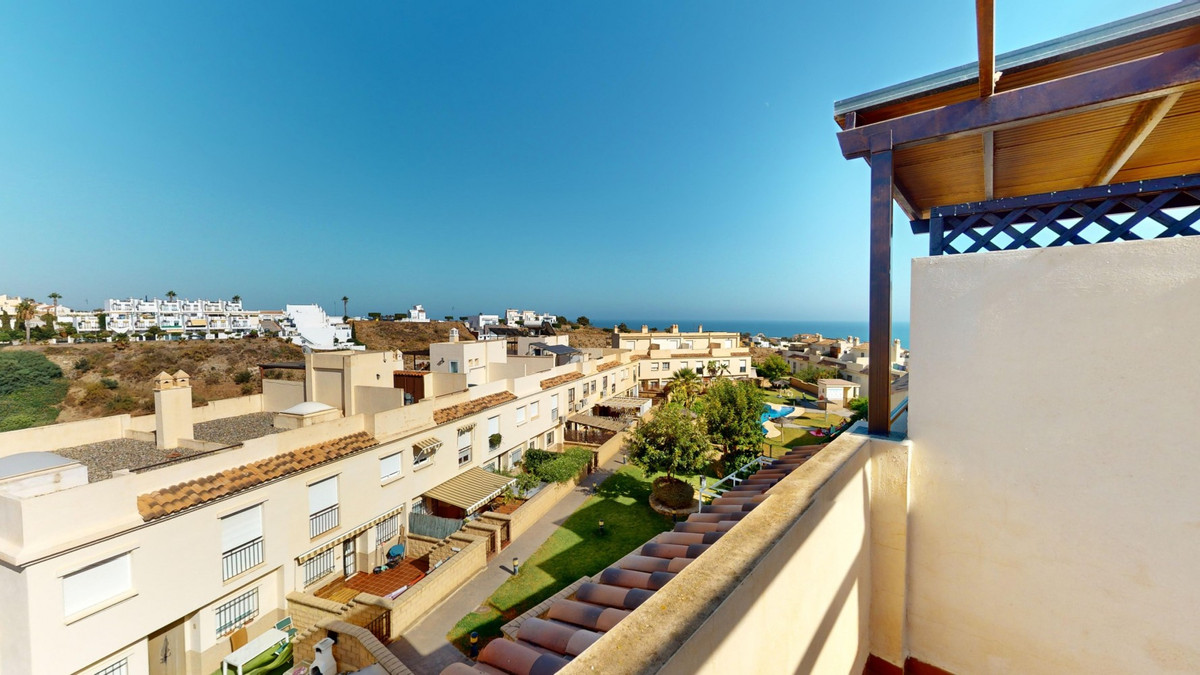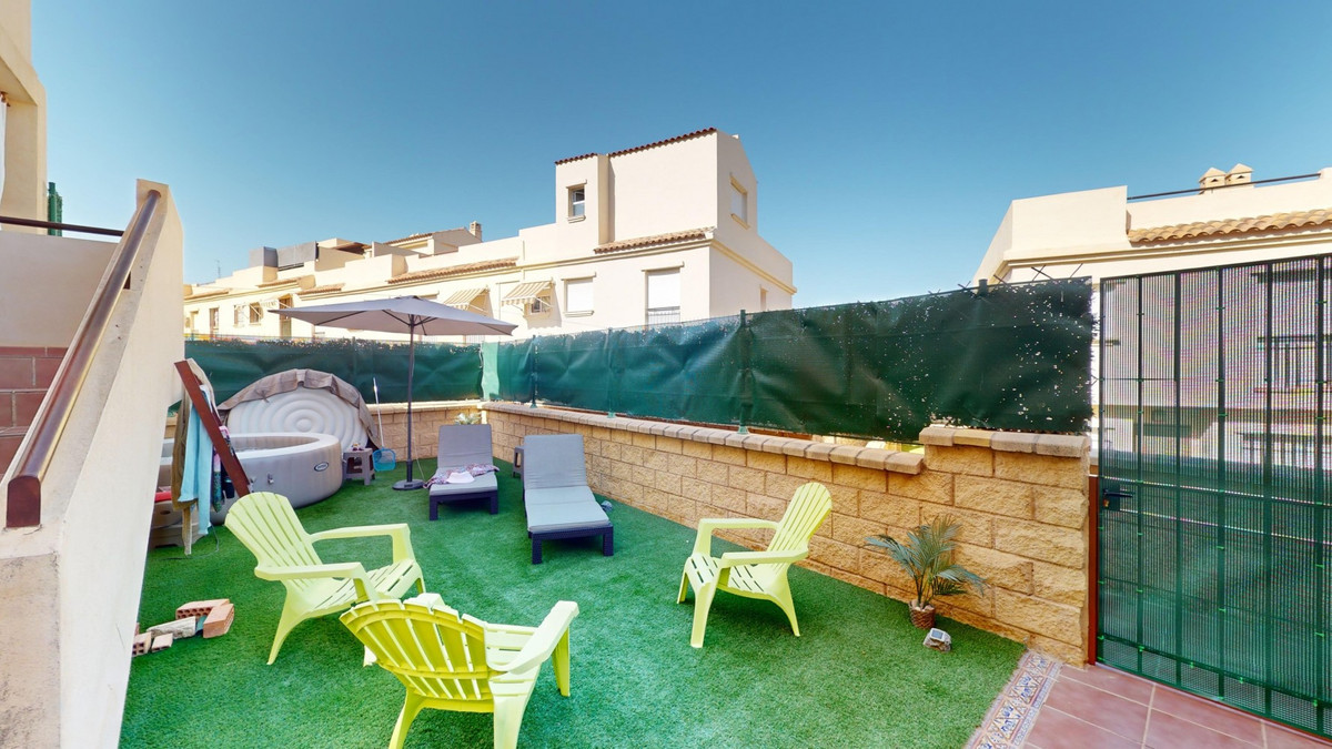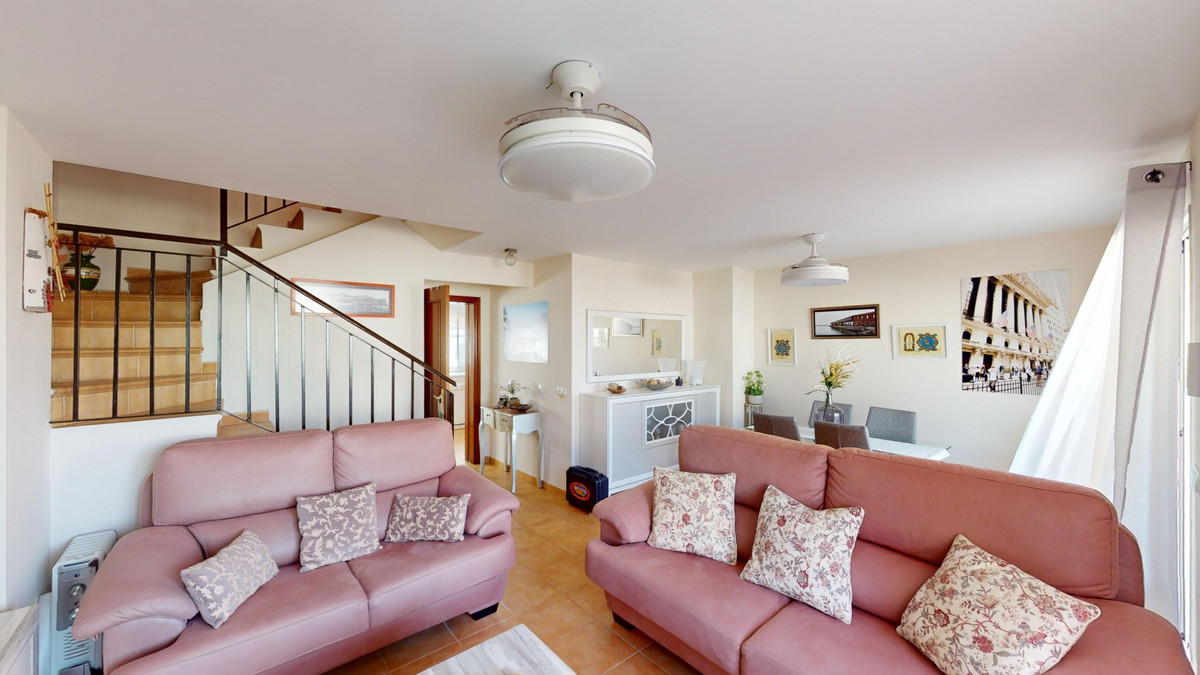 Cette charmante maison d'angle, située dans le quartier résidentiel prisé de Valle Niza, offre un cadre de vie chaleureux empreint d'une touche méditerranéenne. Répartie sur deux niveaux et dotée d'une spacieuse terrasse sur le toit offrant une vue imprenable sur la mer, cette propriété réunit tout le confort nécessaire pour profiter pleinement du soleil andalou. Le rez-de-chaussée comprend une cuisine fonctionnelle et bien équipée, ainsi qu'un lumineux séjour/salle à manger avec accès direct à la terrasse, idéale pour les repas en plein air ou les moments de détente. Un WC complète ce niveau. À l'étage, vous trouverez la suite parentale avec salle de bains privative et accès à une terrasse privée, parfaite pour savourer la fraîcheur matinale. Trois autres chambres, dont une avec accès à la terrasse, offrent un espace généreux pour la famille ou les invités. Une deuxième salle de bains est également disponible. La maison est climatisée et dispose de placards intégrés pour un confort optimal et de nombreux rangements. La terrasse sur le toit offre de multiples possibilités d'aménagement, que ce soit pour bronzer ou savourer un apéritif relaxant au coucher du soleil face à la mer. Entourée d'une vaste terrasse sur trois côtés, la maison bénéficie de toujours un coin d'ombre agréable. Un petit jardin en contrebas de la terrasse offre un accès direct à la piscine commune, située à quelques pas. La résidence propose également cinq piscines supplémentaires, des terrains de tennis et de basketball, ainsi que des aires de jeux pour enfants. Cette propriété est idéale pour les familles ou comme résidence secondaire pour ceux qui recherchent une vie paisible au sein d'une communauté méditerranéenne conviviale. Nous serons ravis de vous présenter prochainement ce bien d'exception, en personne ou par visite virtuelle. Car ce monde est unique, à l'image de notre Axarquía. En Andalousie. Sur la Costa del Sol. Ici, sous le soleil…