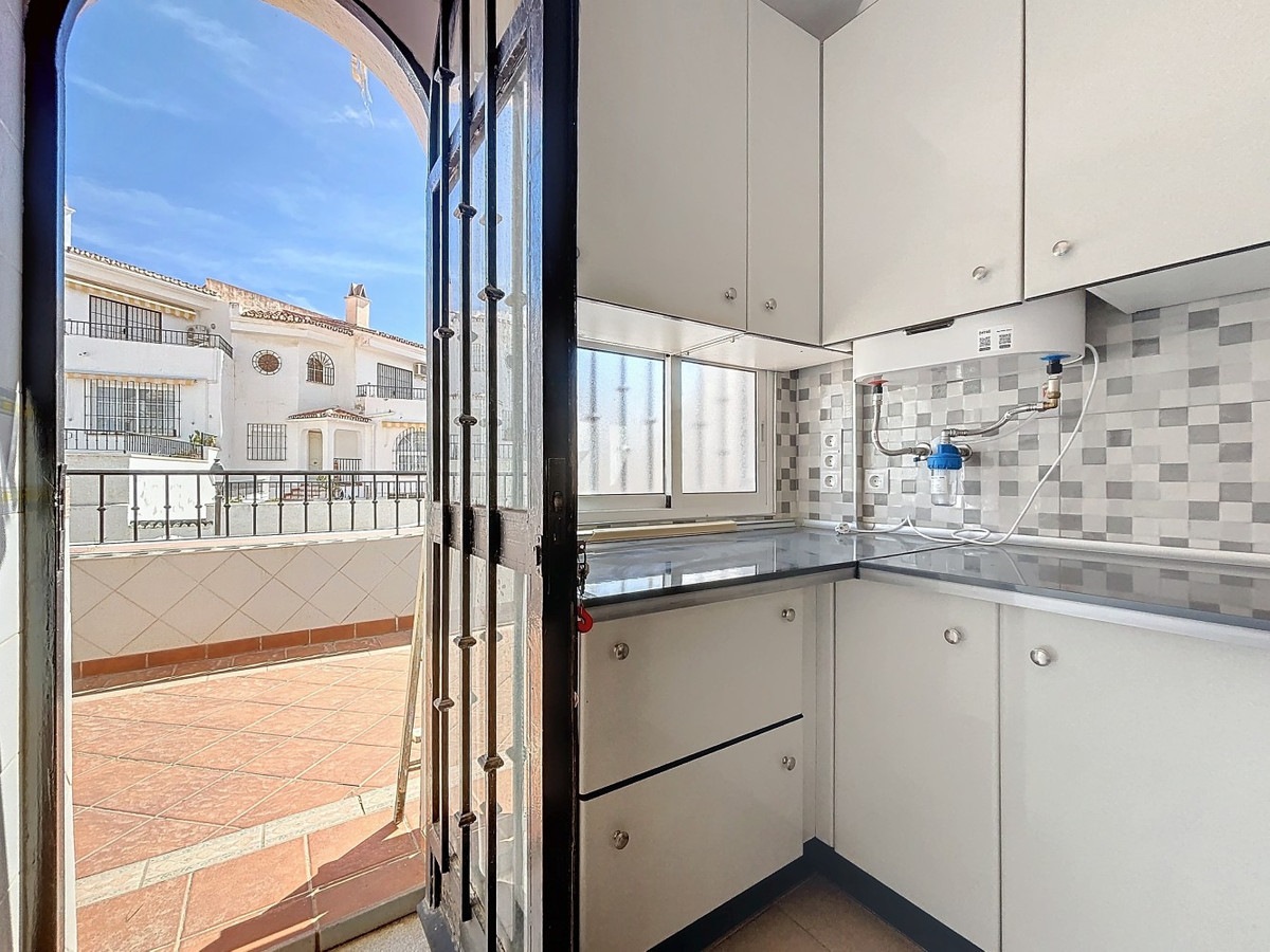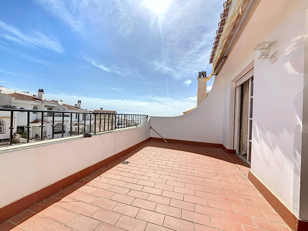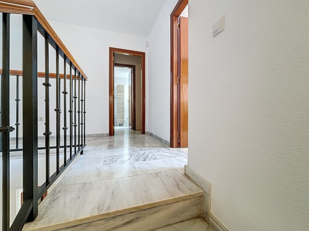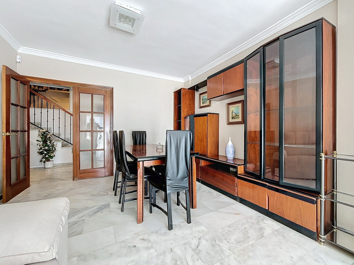 Cette maison jumelée, située à Torre de Benagalbón, offre une surface habitable de 173 m² répartie sur deux étages et un sous-sol. Nichée dans un quartier résidentiel calme, elle bénéficie d'une vue mer, d'une piscine commune et d'une situation idéale à proximité des commerces et services essentiels. Au rez-de-chaussée, un séjour/salle à manger lumineux donne accès à une terrasse, parfaite pour profiter de la vue mer. La cuisine indépendante et spacieuse est entièrement équipée et dispose d'une buanderie attenante. Un WC complète ce niveau. À l'étage, trois chambres lumineuses vous attendent. La chambre parentale bénéficie d'une salle de bains privative, tandis que les deux autres chambres se partagent deux salles de bains complètes. Toutes les chambres sont équipées de placards et certaines offrent une vue mer partielle. Le sous-sol est un espace polyvalent pouvant être aménagé en salle de jeux, salle de sport ou espace de rangement. Le garage double offre un accès direct à la maison. À l'extérieur, la véranda vitrée est idéale pour profiter de l'espace en toute saison. Le patio privatif invite à la détente et aux activités de plein air. Enfin, la propriété fait partie d'une résidence avec piscine commune. Emplacement privilégié : La maison est proche de tous les services nécessaires à un confort de vie optimal. À quelques minutes à pied ou en voiture, vous trouverez supermarchés, commerces, pharmacies et restaurants. De plus, plusieurs entreprises, cafés et bars sont situés à proximité. Pour une sécurité accrue, la caserne de pompiers se trouve également à proximité, gage de tranquillité d'esprit. Autant d'atouts qui font de cette propriété un choix idéal pour les familles et les personnes recherchant confort et proximité des services. Une opportunité unique d'acquérir une maison clé en main avec vue sur mer et toutes les commodités à portée de main. Nous serons ravis de vous présenter prochainement cette propriété, en personne ou par visite virtuelle. Car ce monde est unique, à l'image de notre Axarquía. En Andalousie. Sur la Costa del Sol. Ici, sous le soleil…