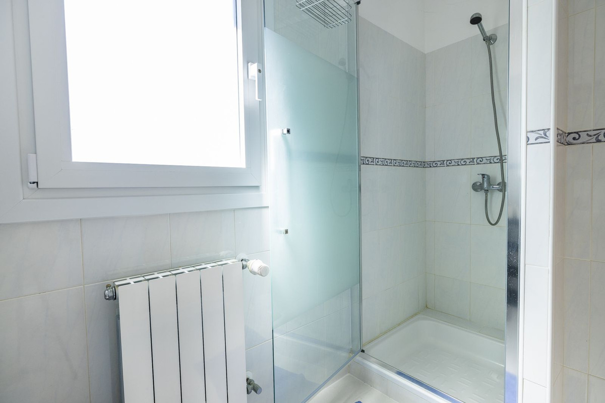 - Au rez-de-chaussée, vous trouverez une chambre confortable avec salle de bains privative (douche, toilettes, lavabo) et climatisation.