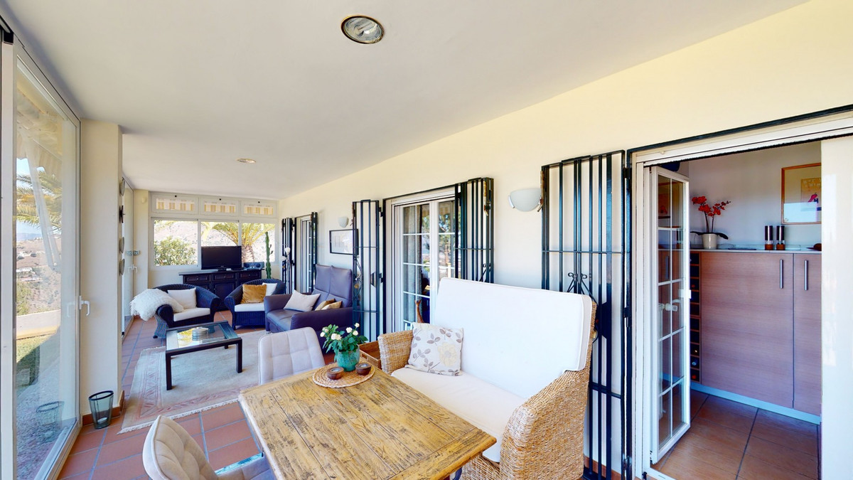 Une vue imprenable, une orientation sud-ouest idéale : la promesse d'un bonheur absolu. Cette villa d'exception, construite avec des matériaux de très haute qualité, offre un cadre idyllique avec un magnifique jardin comprenant spa, sauna et piscine, ainsi qu'une luxueuse cuisine d'été avec coin repas intégré. Située entre Algarrobo et Sayalonga, cette villa unique vous propose tout cela et bien plus encore. Son emplacement privilégié garantit une intimité totale et vous offre une vue romantique sur le coucher du soleil, se reflétant tantôt sur la Méditerranée, tantôt, selon la saison, sur le fabuleux paysage montagneux de Malaga. Un chemin privé asphalté, bordé de pins, mène à l'imposante entrée de la propriété, où un îlot de palmiers se dresse au milieu d'un rondin. Plusieurs places de parking, un garage et un grand abri voiture complètent le rez-de-chaussée. Au premier étage se trouvent le salon avec une cheminée séparée, des toilettes invités, une buanderie, une cuisine moderne donnant sur une véranda spacieuse et parfaitement équipée, ainsi qu'une très belle chambre avec salle de bains privative. À l'étage de la villa se trouve la suite parentale avec une spacieuse salle de bains privative et un dressing. La propriété est équipée du chauffage central, de la climatisation et d'une cheminée. Le terrain est agrémenté d'une variété d'arbres fruitiers, de palmiers, de plantes tropicales et de pins. La plage et la mer, ainsi que le golf et le port de plaisance de Caleta, sont à 15 minutes, et l'aéroport de Malaga à seulement 40 minutes. Nous serions ravis de vous présenter prochainement cette propriété de rêve, en personne ou par visite virtuelle. Car ce monde est unique, à l'image de notre Axarquía. En Andalousie. Sur la Costa del Sol. Ici, sous le soleil…