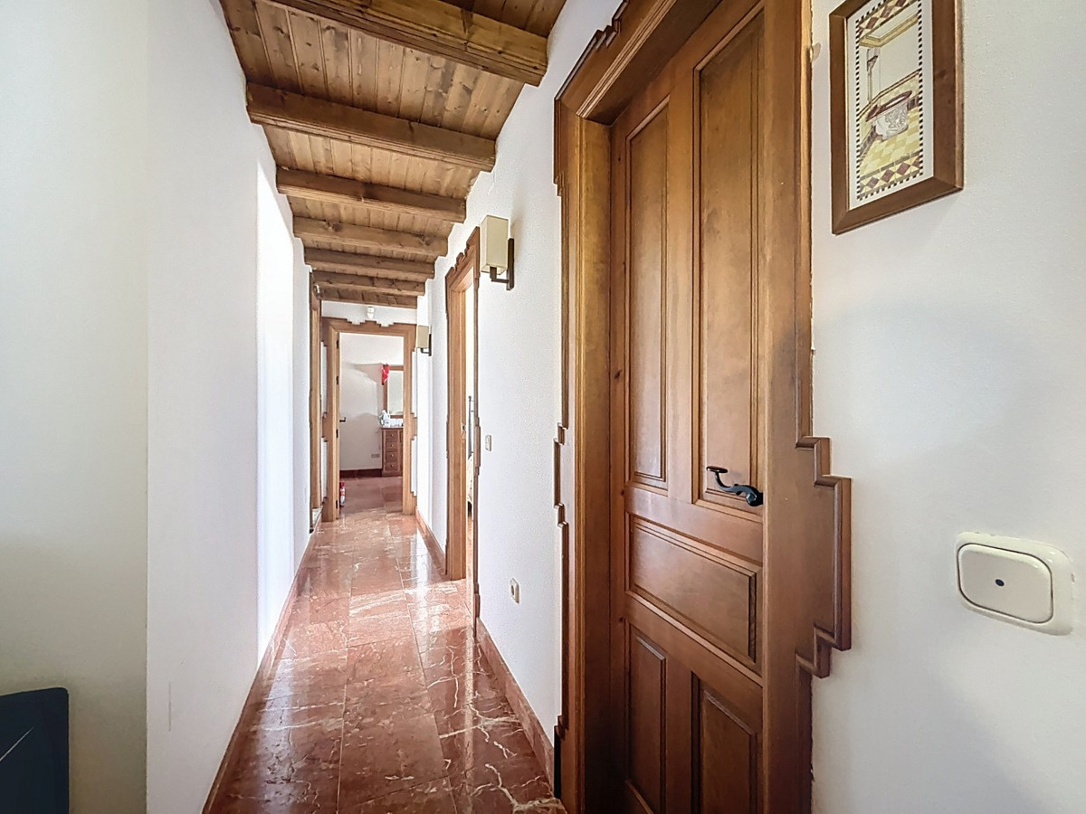 Cette charmante villa située à Los Romanes, près de Malaga, allie harmonieusement l'architecture espagnole traditionnelle au confort moderne. La maison principale comprend quatre chambres, dont une spacieuse suite parentale, trois salles de bains complètes, des toilettes invités, une buanderie et une cave à vin au sous-sol, idéale pour les amateurs de vin. Les pièces à vivre se distinguent par leurs plafonds à poutres apparentes qui leur confèrent chaleur et cachet. Le salon principal se démarque par son plafond en bois orné de motifs solaires et son grand lustre en fer forgé. Une cheminée et un mobilier confortable créent une ambiance chaleureuse. De grandes fenêtres et des portes-fenêtres inondent l'espace de lumière naturelle et offrent de superbes vues sur le lac Viñuela et la nature environnante. La propriété comprend également un appartement indépendant avec deux chambres, une salle de bains et un espace de vie ouvert convivial avec cuisine équipée, idéal pour accueillir des invités ou pour un hébergement supplémentaire. À l'extérieur, la villa bénéficie d'un vaste terrain avec piscine privée, cuisine d'été avec barbecue, terrasse couverte, pavillon, deux garages et deux remises pouvant être transformées en un autre appartement. De plus, la propriété dispose de son propre puits et d'une citerne dans l'un des garages, garantissant un approvisionnement en eau fiable toute l'année. Nous sommes ravis de pouvoir vous présenter prochainement cette propriété de rêve, en personne ou par visite virtuelle. Car ce monde est unique, à l'image de notre Axarquía. En Andalousie. Sur la Costa del Sol. Ici, sous le soleil…