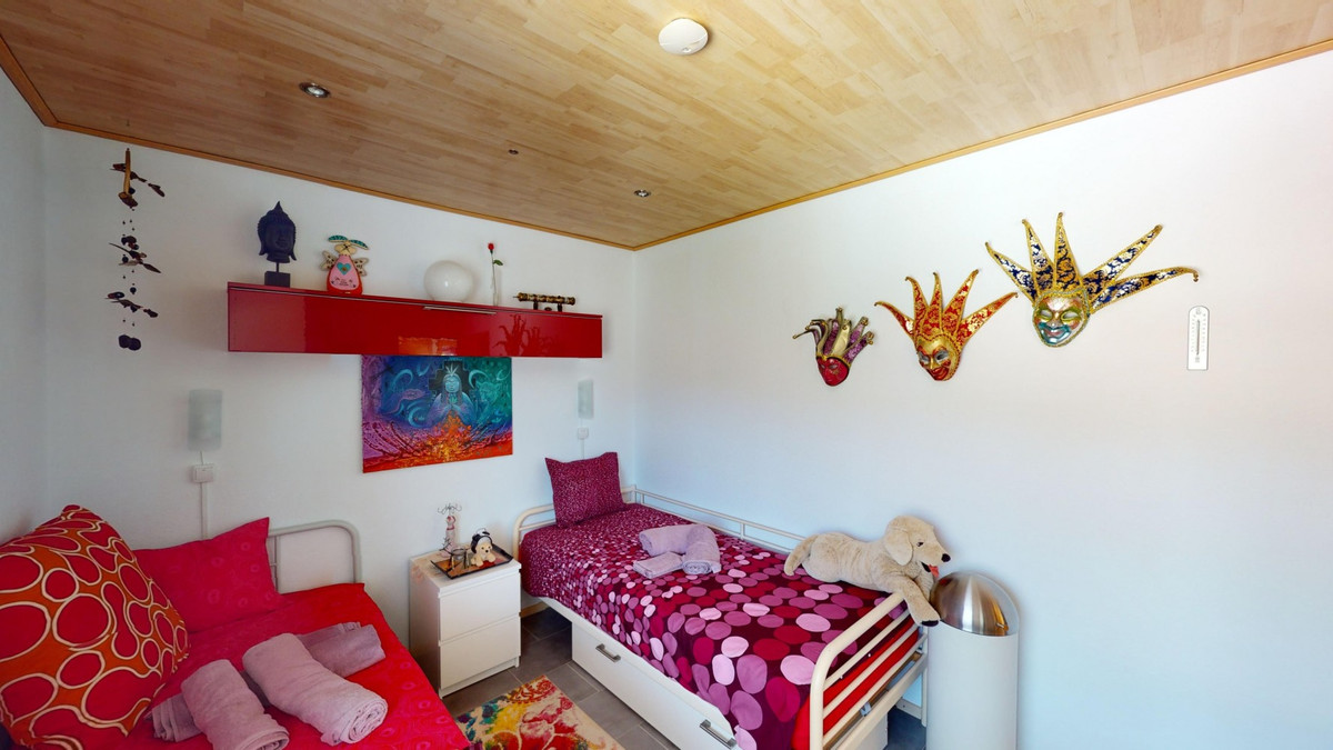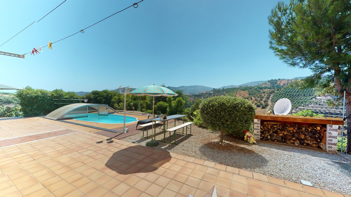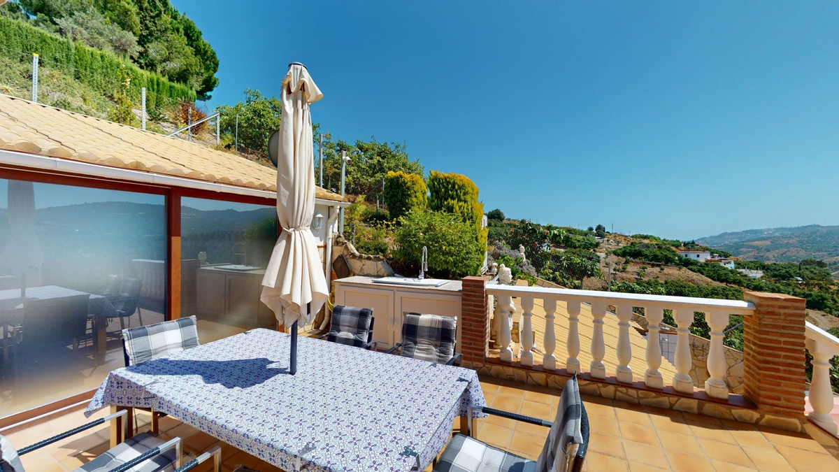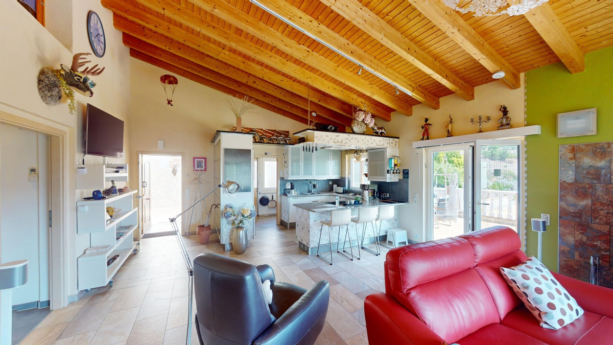 Magnifique villa à vendre au pied de Frigiliana. Cette impressionnante villa, nichée au pied de Frigiliana, offre deux logements indépendants sur deux niveaux, chacun avec son propre accès et son intimité. Le logement supérieur, d'une superficie de 150 m², comprend un vaste espace de vie ouvert avec cuisine attenante et rangements pratiques. La terrasse offre une vue imprenable sur les montagnes environnantes. Le salon se distingue par sa cheminée pivotante, qui apporte chaleur et ambiance. La terrasse abrite également une salle de fitness. Autre atout : la luxueuse baignoire du salon, idéale pour se détendre. Ce logement comprend trois chambres spacieuses, deux salles de bains (dont une attenante à la chambre principale) et des toilettes invités. Le logement inférieur, d'une superficie totale de 80 m², comprend un espace de vie convivial avec cuisine, une chambre et une salle de bains. L'ensemble de la maison est équipé d'un chauffage au sol, de la climatisation et d'un système d'aspiration centralisée. Construite selon les normes allemandes les plus exigeantes, elle bénéficie d'une excellente isolation et de matériaux de haute qualité. Un système de panneaux solaires sur le toit assure le chauffage et l'eau chaude sanitaire. L'espace extérieur de cette villa d'exception est tout simplement parfait. Vous y trouverez une piscine d'eau salée chauffée avec une couverture facile à manipuler, un jacuzzi relaxant et une cuisine d'été entièrement équipée avec sauna. De plus, un atelier, une caravane et une petite dépendance se situent au pied de la propriété. Le terrain de 6 000 m² est agrémenté de nombreux arbres fruitiers, une véritable invitation à la flânerie pour les amoureux de la nature. La villa bénéficie d'une excellente desserte et est idéale pour ceux qui apprécient une vie paisible en pleine nature. Vivez une expérience luxueuse dans un cadre à couper le souffle : votre nouvelle demeure au pied de Frigiliana vous attend ! Nous serons ravis de vous présenter prochainement cette propriété de rêve, en personne ou par visite virtuelle. Car ce monde est unique, à l'image de notre Axarquía. En Andalousie. Sur la Costa del Sol. Ici, sous le soleil…