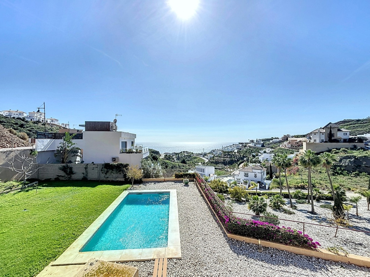 Cette luxueuse villa méditerranéenne à Torrox, près de Malaga, s'étend sur deux étages et offre une vue imprenable sur la mer. Conçue dans une optique de développement durable, cette maison à énergie positive maintient une température agréable toute l'année grâce à une isolation performante et un système de ventilation performant. Des panneaux solaires optimisent encore son efficacité énergétique. Le rez-de-chaussée comprend un espace de vie ouvert avec une cuisine moderne et élégante, équipée de meubles clairs et d'électroménager intégré. Le spacieux séjour, lumineux et aéré, fusionne harmonieusement intérieur et extérieur grâce à de grandes baies vitrées s'ouvrant sur une terrasse ensoleillée. Cette terrasse offre une vue panoramique exceptionnelle sur la mer et le paysage environnant et comprend une piscine privée, un lieu idéal pour les repas en plein air et la détente. La villa dispose de trois chambres confortables, dont une suite parentale avec salle de bains privative. Les deux autres chambres partagent une salle de bains élégante avec des équipements contemporains, tels que des douches à l'italienne et des meubles vasques suspendus. Un espace bureau avec rangements intégrés offre un coin dédié au travail ou aux études. L'accessibilité est un atout majeur de cette maison. Un ascenseur dessert les deux étages, assurant confort et commodité à tous les résidents. La villa offre également de nombreux rangements, avec des placards intégrés dans les chambres et des espaces aménagés dans toute la maison. À l'extérieur, le jardin paysager renforce l'ambiance méditerranéenne et offre un havre de paix. Un abri voiture permet de garer votre véhicule en toute sécurité. La propriété s'étend sur deux parcelles constructibles, offrant la possibilité d'y ajouter des structures si vous le souhaitez. Conçue par son propriétaire actuel, cette villa intègre des éléments architecturaux uniques et des détails soignés qui la distinguent. Alliant le charme méditerranéen à une durabilité moderne, cette maison est un véritable sanctuaire au cœur de la Costa del Sol. Nous sommes ravis de pouvoir vous présenter prochainement cette propriété de rêve, en personne ou par visite virtuelle. Car ce monde est unique, à l'image de notre Axarquía. En Andalousie. Sur la Costa del Sol. Ici, sous le soleil…