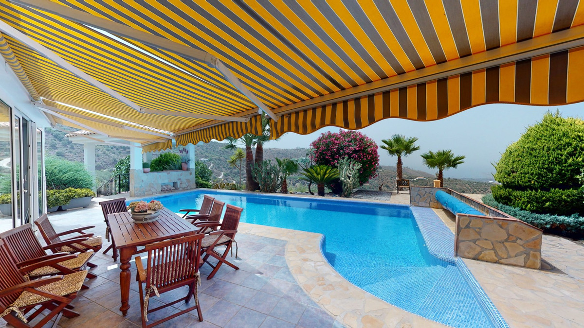 Si vous rêvez de vivre dans une villa d'exception, de construction haut de gamme, avec piscine et vue imprenable sur la mer, alors vous avez trouvé la propriété idéale. Cette luxueuse villa de 280 m² offre tout le confort dont vous pourriez rêver. Au cœur de cette villa moderne, mêlant style andalou, se trouve un charmant patio qui confère à la maison une touche d'élégance et crée une ambiance lumineuse et agréable. Il dessert l'ensemble du rez-de-chaussée. Depuis l'entrée, on accède d'un côté à une pièce faisant office de bureau, ainsi qu'à une chambre avec salle de bains privative et au spacieux salon avec cheminée et vue sur la mer. Ce dernier jouxte la salle à manger et la cuisine, d'où l'on accède au couloir qui rejoint l'entrée. Ce couloir dessert également le dressing avec salle de bains privative et sauna. Un escalier mène de l'entrée au premier étage. Vous y trouverez la vaste suite parentale avec salle de bains privative et véranda. Un escalier extérieur permet d'accéder à l'espace extérieur, offrant ainsi à cette suite une entrée indépendante. Le magnifique espace extérieur comprend un garage double ainsi qu'une buanderie faisant également office de rangement. Juste à côté de la piscine accueillante se trouvent une salle de sport avec salle de bain, ainsi qu'une annexe vitrée faisant office de salon avec cuisine d'été. L'endroit idéal pour des fêtes et des dîners en famille ou entre amis. Sur la propriété de 19 500 m², un paddock avec abri et allée privée est dédié aux chevaux. Il est situé en contrebas de la maison. L'allée mène également à un petit manège avec trois boxes, une sellerie et une douche pour les chevaux. Vous disposez d'une grande liberté d'aménagement sur cette vaste propriété. Que ce soit pour créer un potager, agrandir l'espace dédié aux chevaux, transformer le manège en court de tennis, terrain de volley-ball ou petit terrain de football, ou même envisager un tout autre projet, le choix vous appartient. Nous serions ravis de vous présenter prochainement cette propriété de rêve, en personne ou par visite virtuelle. Car ce monde est unique, à l'image de notre Axarquía. En Andalousie. Sur la Costa del Sol. Ici, du bon côté de la vie...