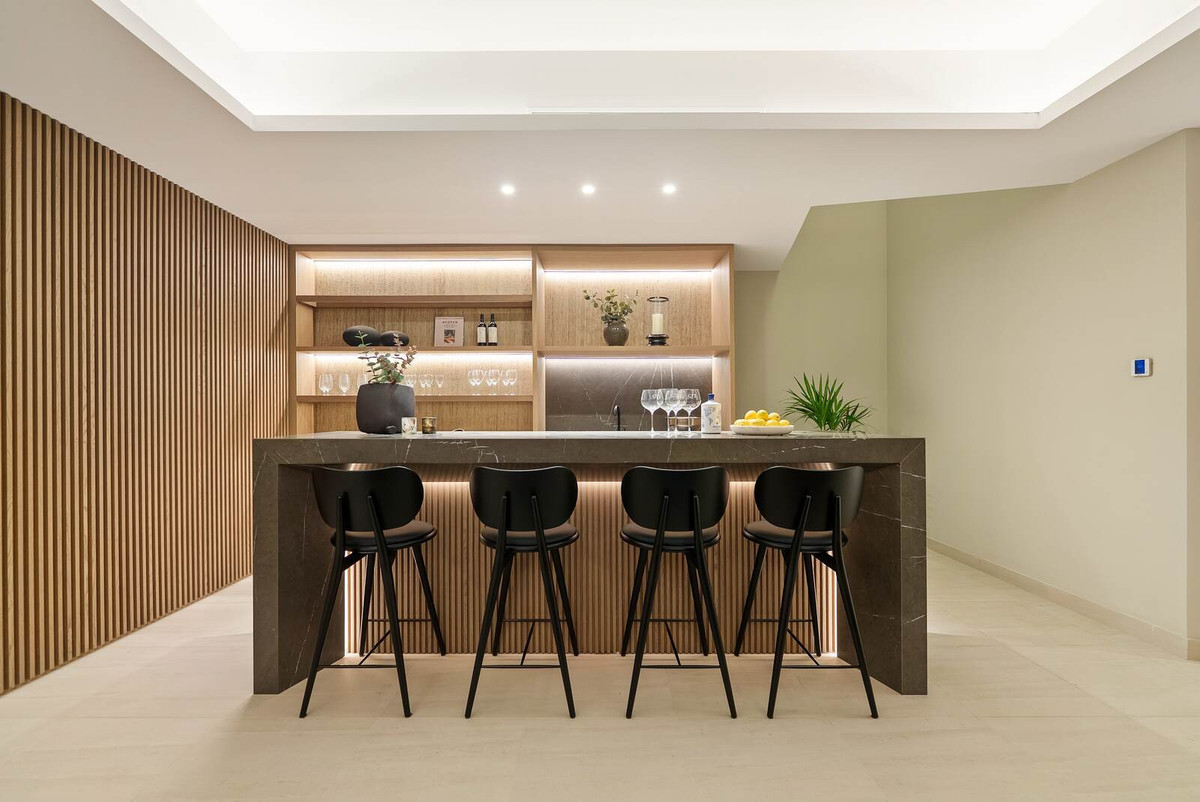 Designed to blur the boundaries between indoor and outdoor living, the residence features an expansive covered terrace ideal for dining and entertaining with family and friends. The bespoke rooftop solarium, complete with a private pool and breathtaking panoramic views over the Mediterranean Sea, Gibraltar, Africa, and Marbella’s iconic La Concha mountain.