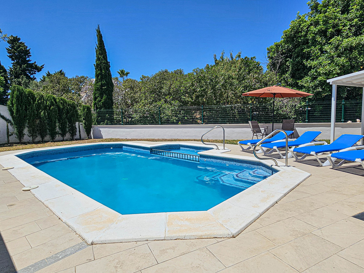 Villa for sale in , Mijas Costa with 4 bedrooms, 3 bathrooms, 1 toilet and with orientation south, with private swimming pool, private garage and private garden. Regarding property dimensions, it has 352 m² built and 775 m² plot. Has the following facilities amenities near, transport near, air conditioning, fully furnished, fully fitted kitchen, fireplace, barbecue, guest toilet, private terrace, living room, sea view, security shutters, smart home system, laundry room, internet - wi-fi, covered terrace, fitted wardrobes, garden view, street view, close to sea / beach, close to golf, open plan kitchen, balcony, good condition, close to shops, close to town and close to schools.