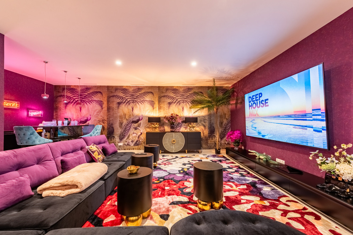 Équipements : Terrasse couverte, Placards intégrés, Terrasse privée, Wi-Fi, Salle de sport, Salle de jeux, Débarras, Buanderie, Salle de bains attenante, Sol en marbre, Bar, Barbecue, Double vitrage, Domotique, Sous-sol