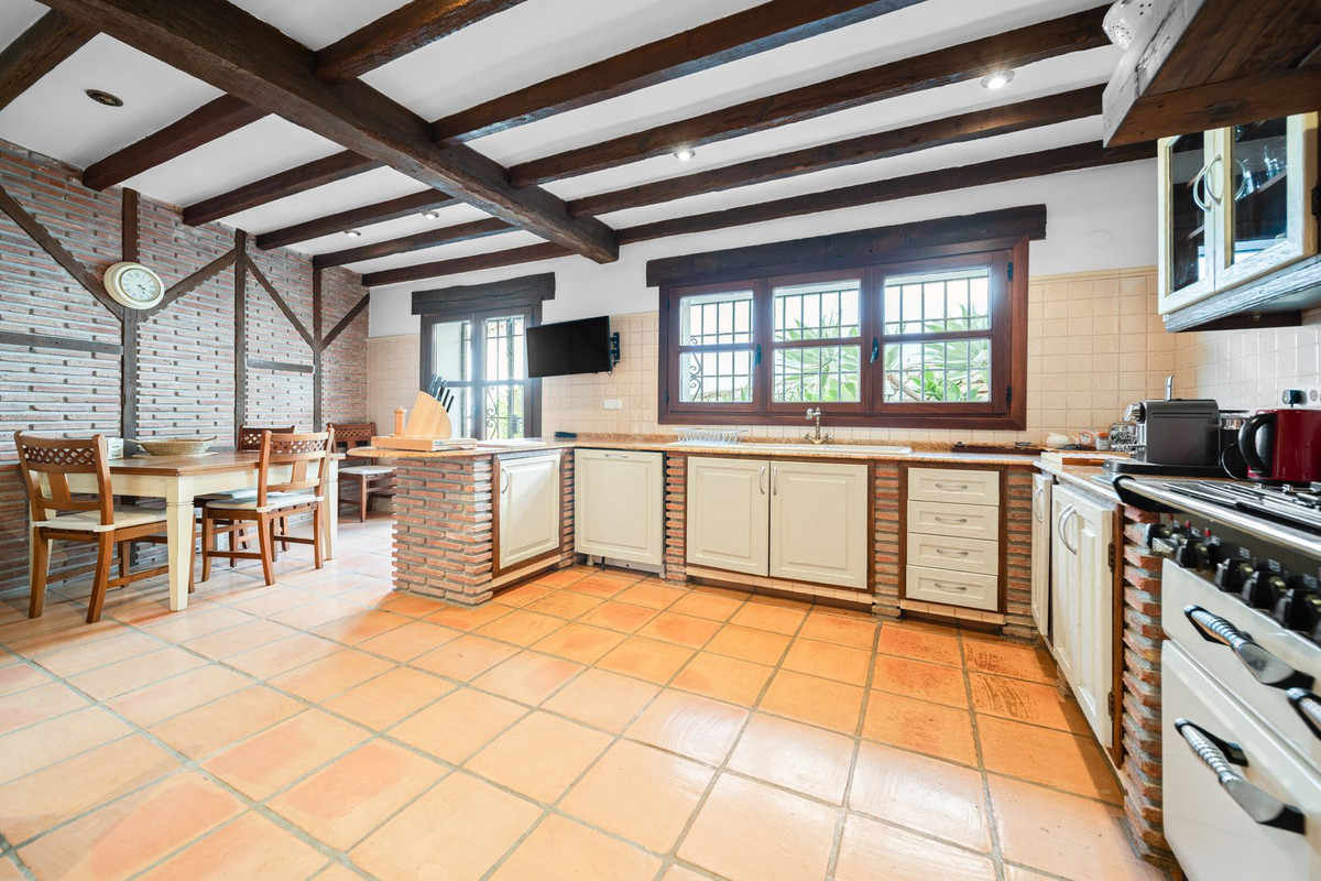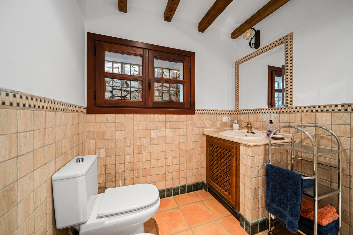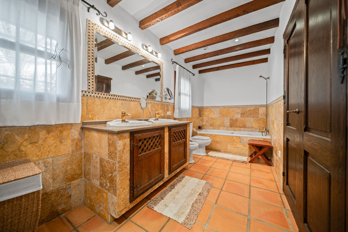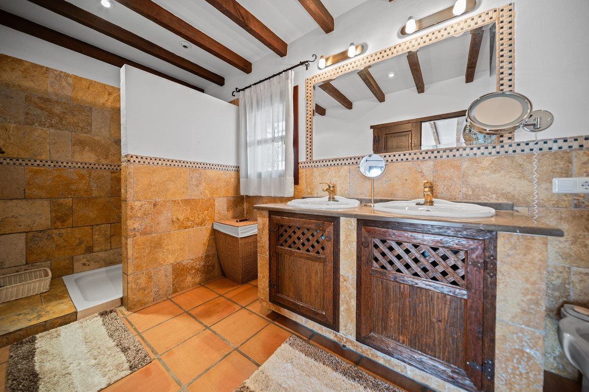 La villa est en excellent état et séduit par son caractère andalou authentique : de magnifiques poutres en bois, des détails en brique et en pierre, et une élégante finition rustique qui crée une atmosphère chaleureuse et accueillante.