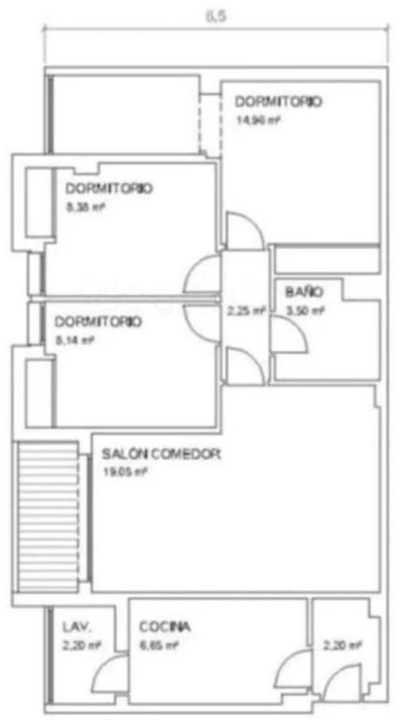 3 chambres, 1 salle de bain, surface construite 95 m², terrasse 4 m².