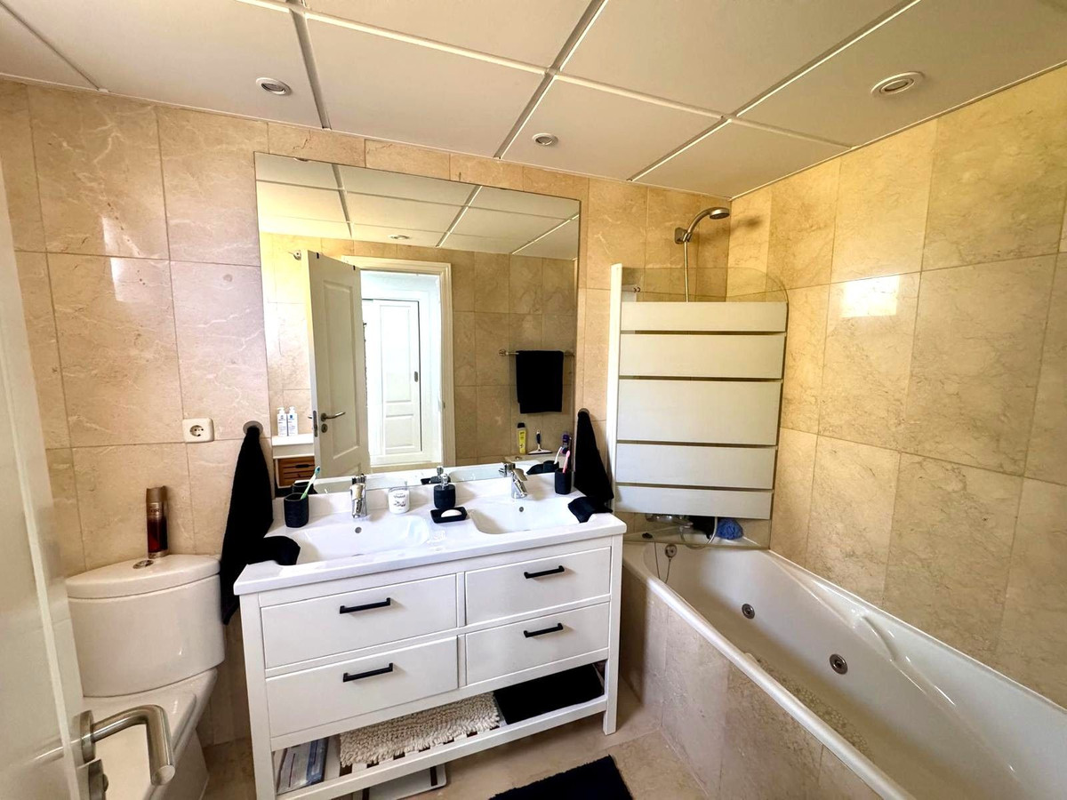 Situé au sein d'une résidence paisible et bien entretenue avec jardins paysagers, cet appartement offre une vue imprenable sur le jardin, la piscine et les montagnes. Les amateurs de padel apprécieront le court récemment rénové de la résidence. Le tout se trouve à quelques minutes en voiture de la plage, des terrains de golf locaux et des charmantes villes côtières de San Luis de Sabinillas et d'Estepona, ainsi que du port de plaisance pittoresque de La Duquesa.