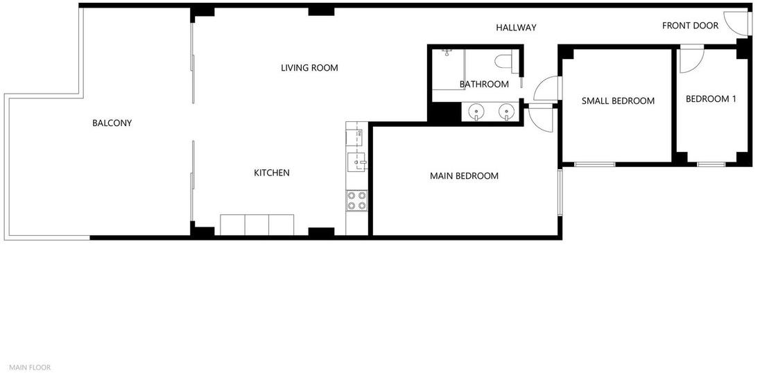 L'appartement comprend officiellement deux chambres et une salle de bains, ainsi qu'une pièce supplémentaire actuellement meublée d'un lit superposé et utilisée comme chambre d'appoint. Cet espace supplémentaire rend le logement flexible pour les familles, les invités ou la location.