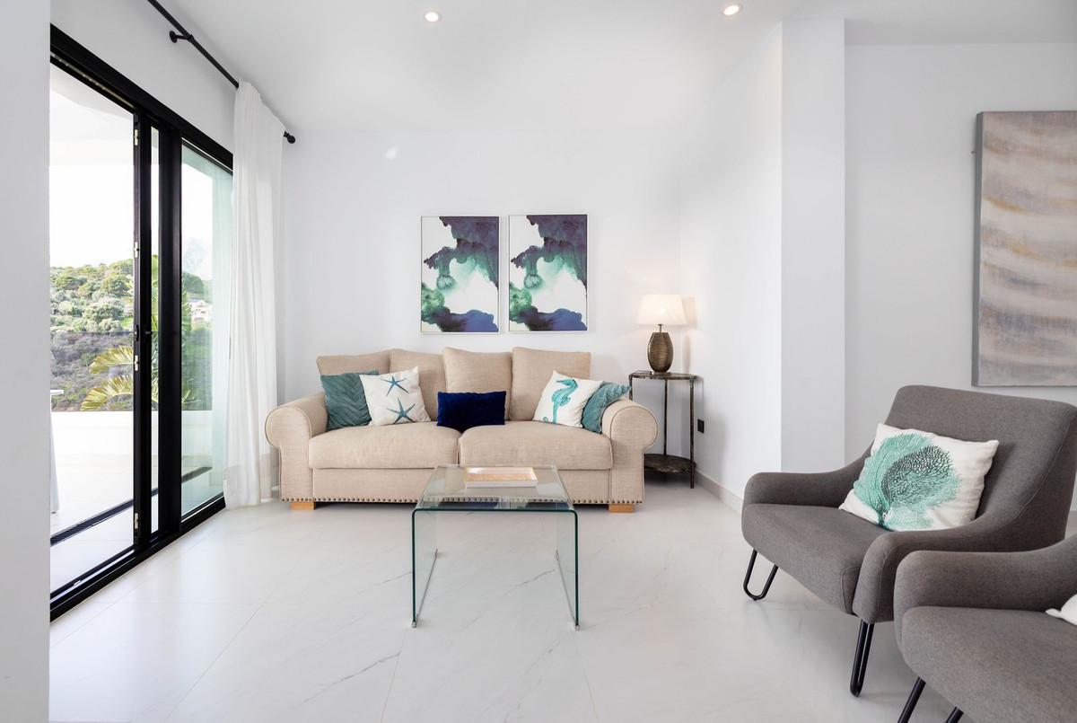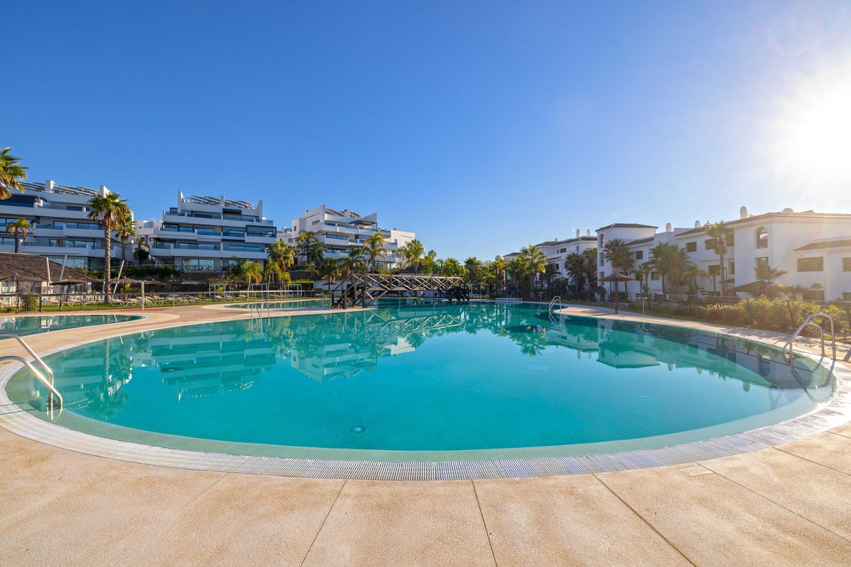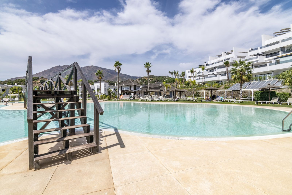 Cette propriété comprend deux chambres et deux salles de bains, agencées dans un espace lumineux et aéré où chaque détail a été soigneusement pensé pour un confort optimal. Le séjour, avec ses baies vitrées, s'ouvre sur une terrasse privative exposée ouest offrant une vue panoramique imprenable sur la chaîne de montagnes d'Estepona et de magnifiques couchers de soleil sur la Costa del Sol.