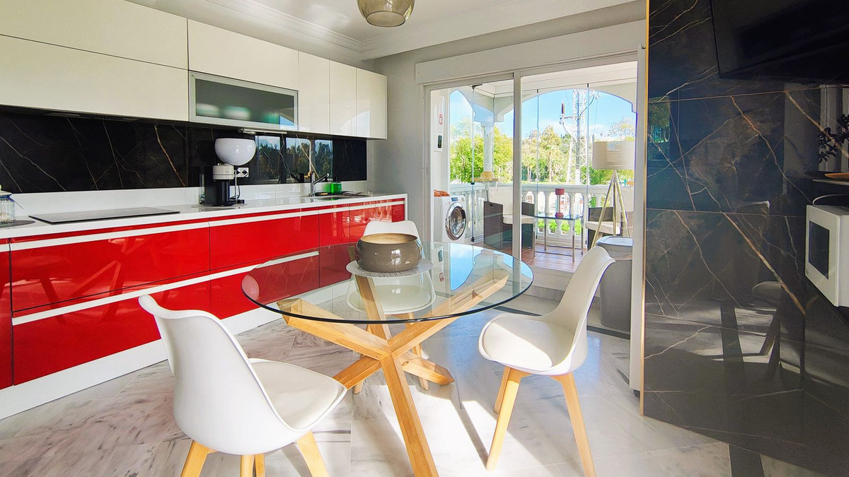 Nous avons le plaisir de vous présenter cet appartement d'angle exceptionnel, idéalement situé dans l'un des quartiers les plus stratégiques et recherchés de Nueva Andalucía. Situé au premier étage et bénéficiant d'une belle orientation sud-est, ce bien se distingue par sa luminosité naturelle et son emplacement privilégié au sein d'une résidence de prestige sécurisée.