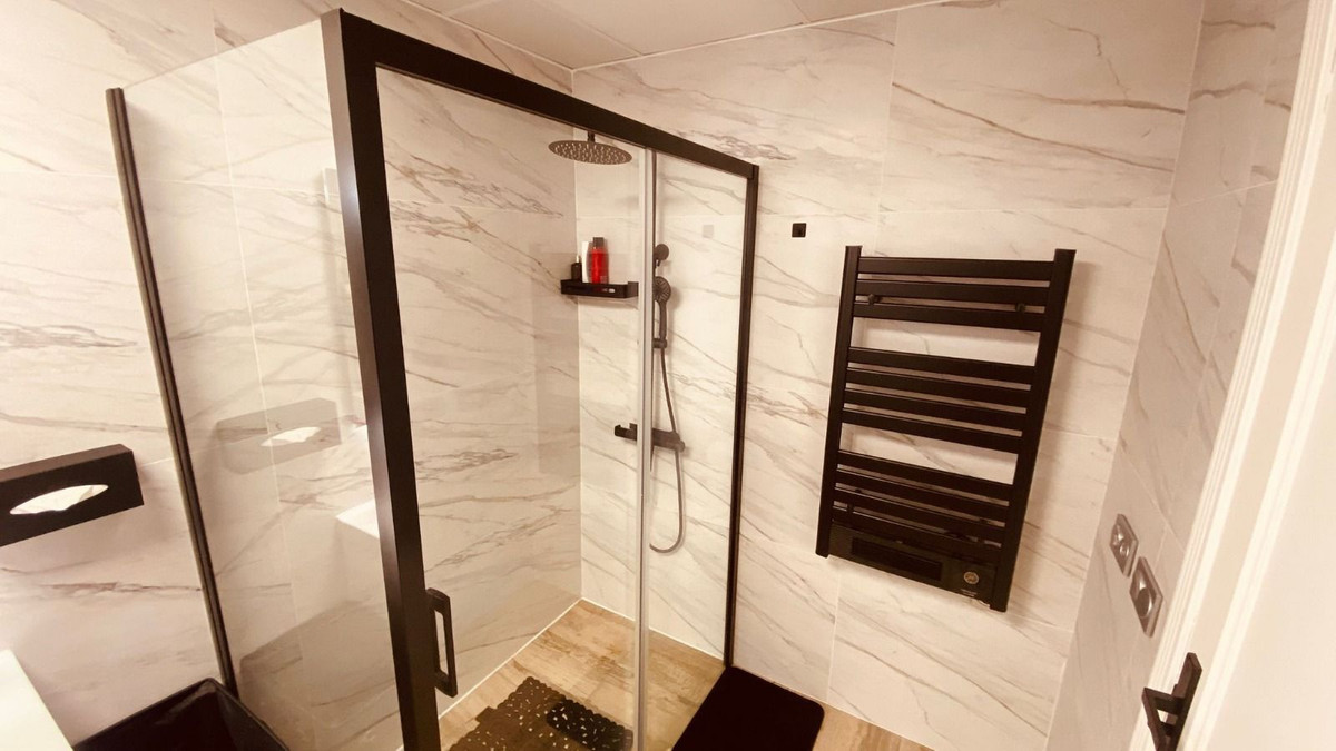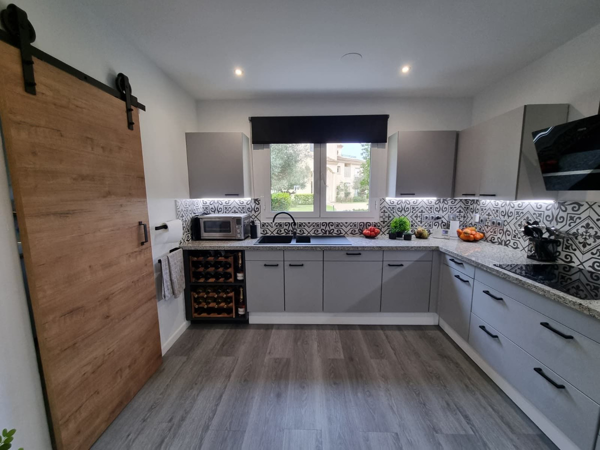 Cette propriété offre trois chambres spacieuses avec salle de bains privative, ainsi qu'un WC invités. Les salles de bains ont été rénovées avec des finitions haut de gamme, dont un chauffage au sol dans deux d'entre elles. La cuisine moderne et entièrement équipée a été repensée avec des matériaux de qualité supérieure et comprend une buanderie et un cellier séparés. Deux des chambres partagent une charmante terrasse couverte, tandis que la suite parentale s'ouvre directement sur la terrasse principale.