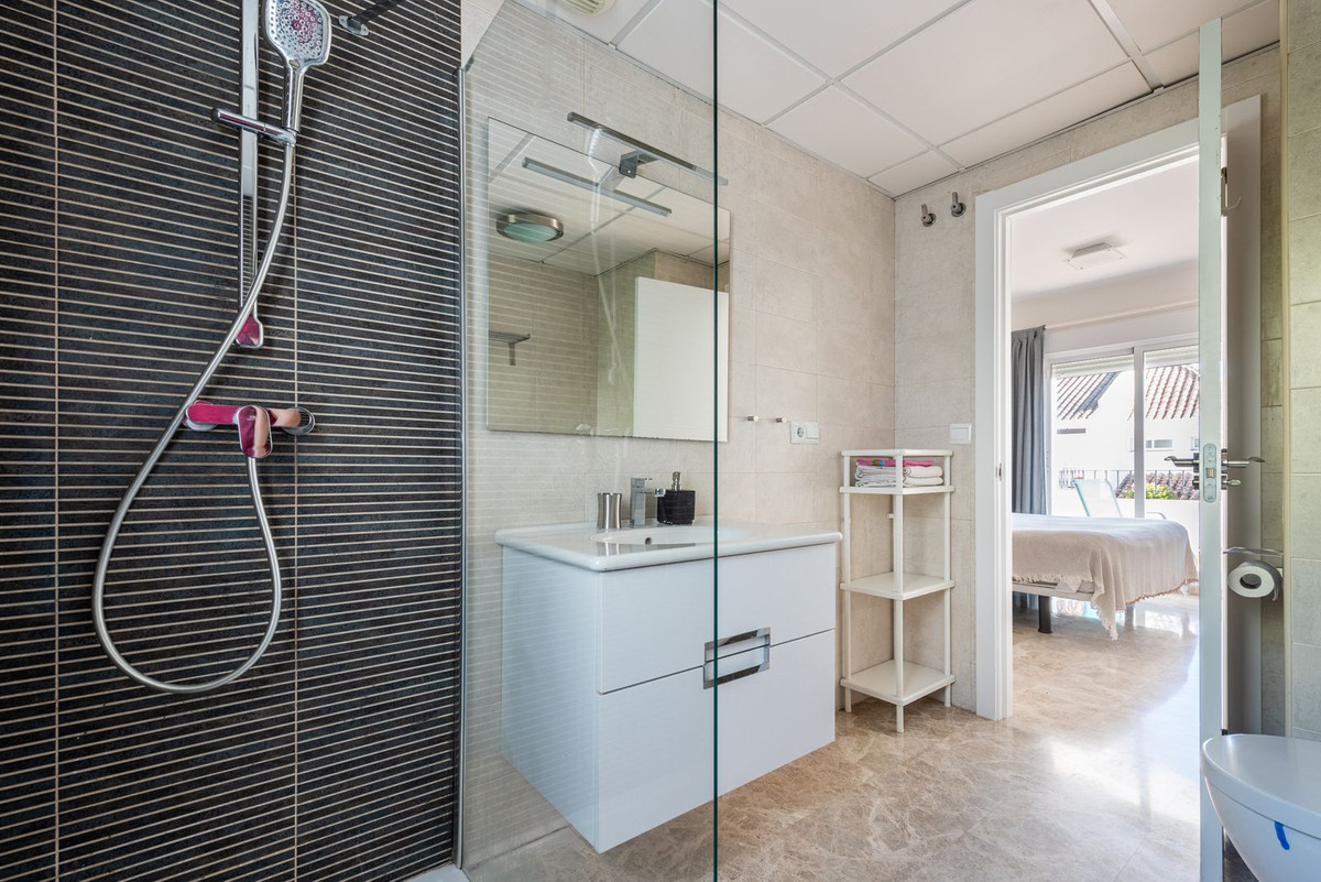 Construite en 2015, cette propriété se déploie sur deux niveaux et comprend trois chambres spacieuses et trois salles de bains complètes. Le rez-de-chaussée se distingue par son agencement ouvert, avec une cuisine moderne intégrée au séjour-salle à manger, créant une atmosphère à la fois spacieuse et chaleureuse et un accès direct au jardin privatif – idéal pour profiter du climat de Marbella en toute saison. Ce niveau comprend également une salle de bains complète.