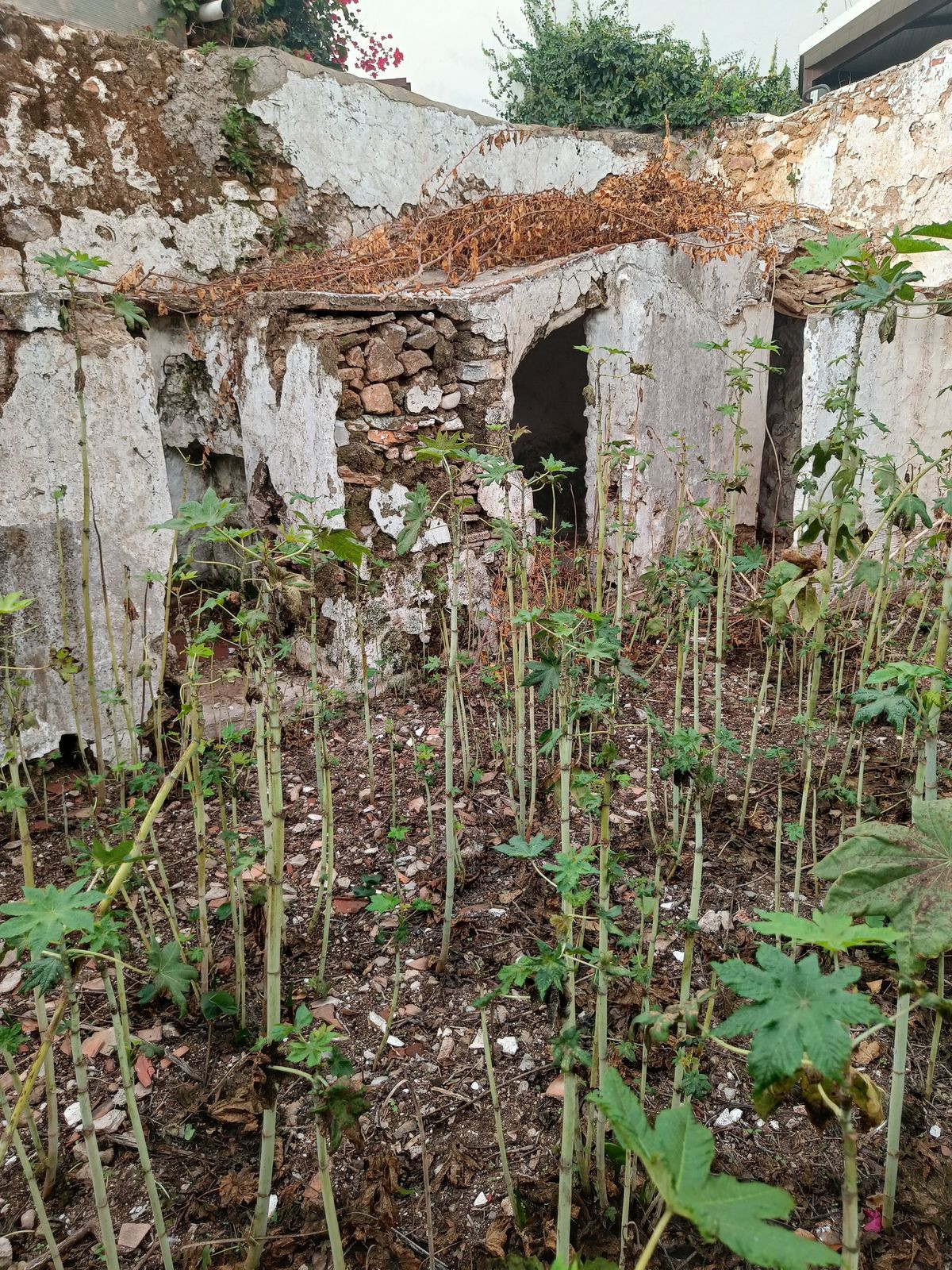 Le rez-de-chaussée comprend un hall d'entrée spacieux, une chambre et l'ancien espace cuisine. De là, on accède à une terrasse avec salle de bains extérieure et à une entrée secondaire donnant sur un petit jardin privatif, idéal pour profiter du climat méditerranéen.