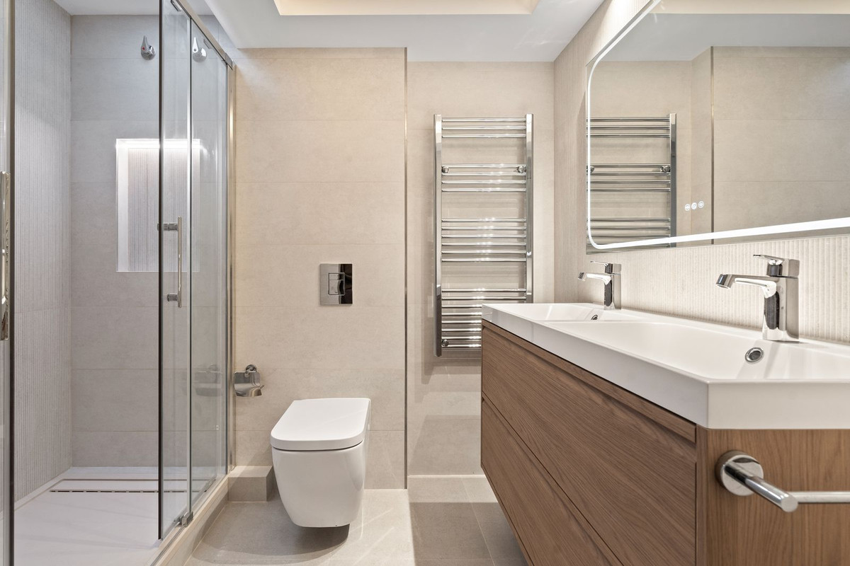 Les salles de bains ont été repensées dans un style contemporain et épuré, intégrant des douches à l'italienne, des équipements raffinés et des textures neutres. Des solutions de rangement sont intégrées dans tout l'appartement, préservant l'harmonie visuelle tout en offrant une grande fonctionnalité.