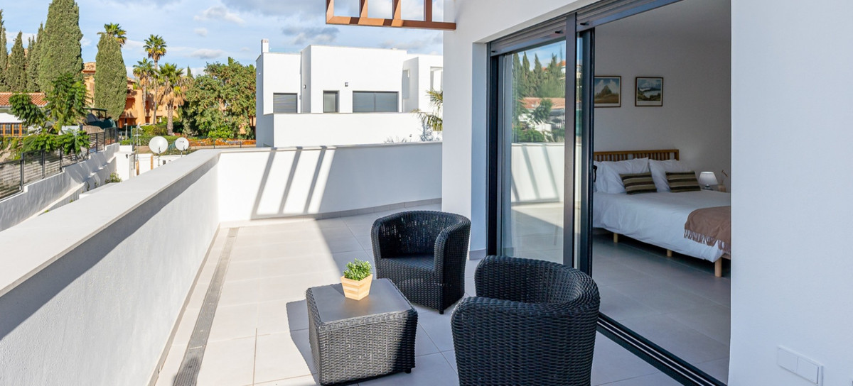 Magnifique maison de ville d'angle, récemment construite, située dans le quartier exclusif de Bel Air, sur le nouveau Golden Mile d'Estepona, un emplacement idéal pour profiter de la tranquillité, du confort et de la proximité de la mer.