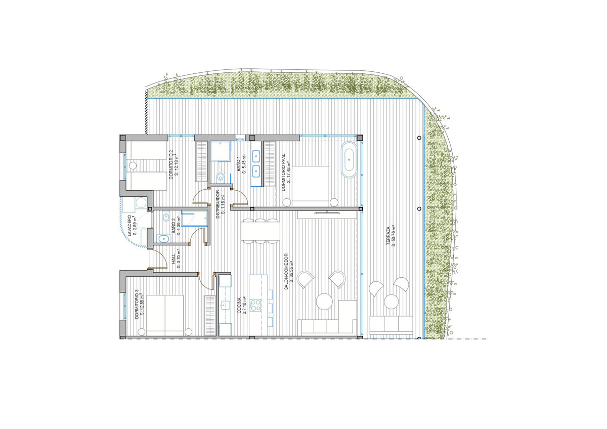 Construit en 2025 selon les normes européennes CTE, cet appartement intègre une climatisation aérothermique pour un chauffage et une climatisation performants, des menuiseries extérieures techniques pour une isolation thermique et acoustique renforcée, ainsi qu'un système domotique de pointe. Stores, éclairage et climatisation sont gérés via des panneaux muraux ou une application mobile. Parmi les fonctionnalités intelligentes intégrées figurent la détection d'inondation avec coupure d'eau automatique, la détection de fumée et les alertes de coupure de courant.