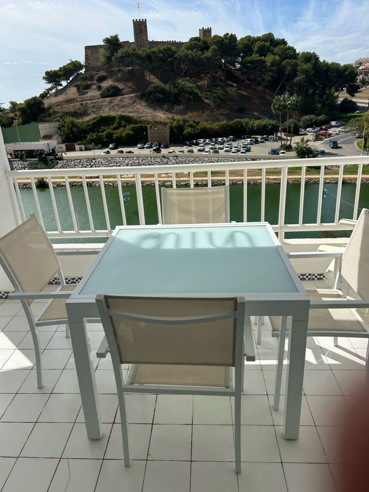 Un appartement de prestige est actuellement en vente au quatrième étage d'un immeuble situé dans l'un des quartiers les plus prisés du front de mer de Fuengirola. Ce bien offre une vue panoramique imprenable sur la mer, la rivière Fuengirola et l'emblématique château de Sohail, une vue qui restera préservée de toute construction future.