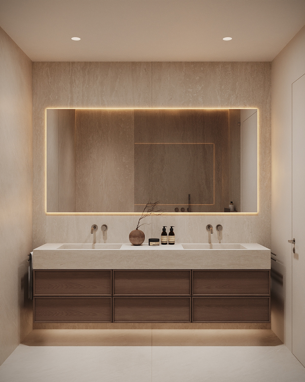 - Des baies vitrées du sol au plafond, qui mettent en valeur la lumière naturelle et l'ouverture spatiale.