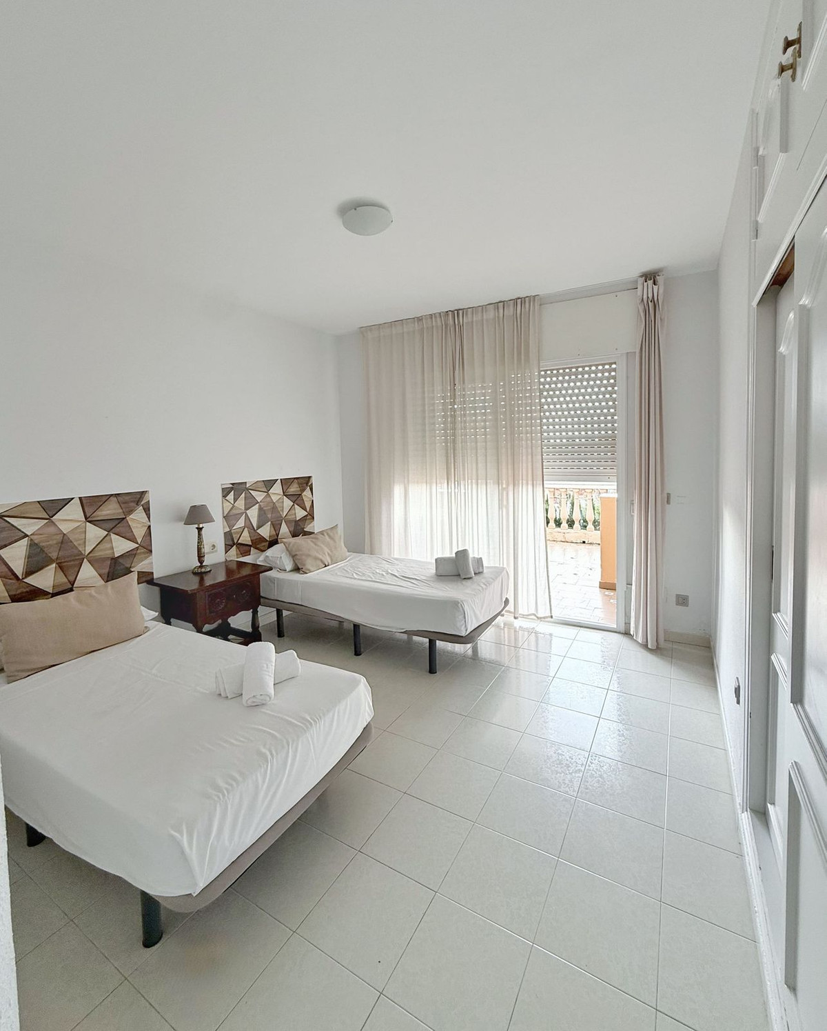 L'étage supérieur comprend quatre chambres extérieures avec placards intégrés et climatisation, dont deux avec accès direct à une terrasse privée donnant sur le jardin, la piscine et les espaces extérieurs.