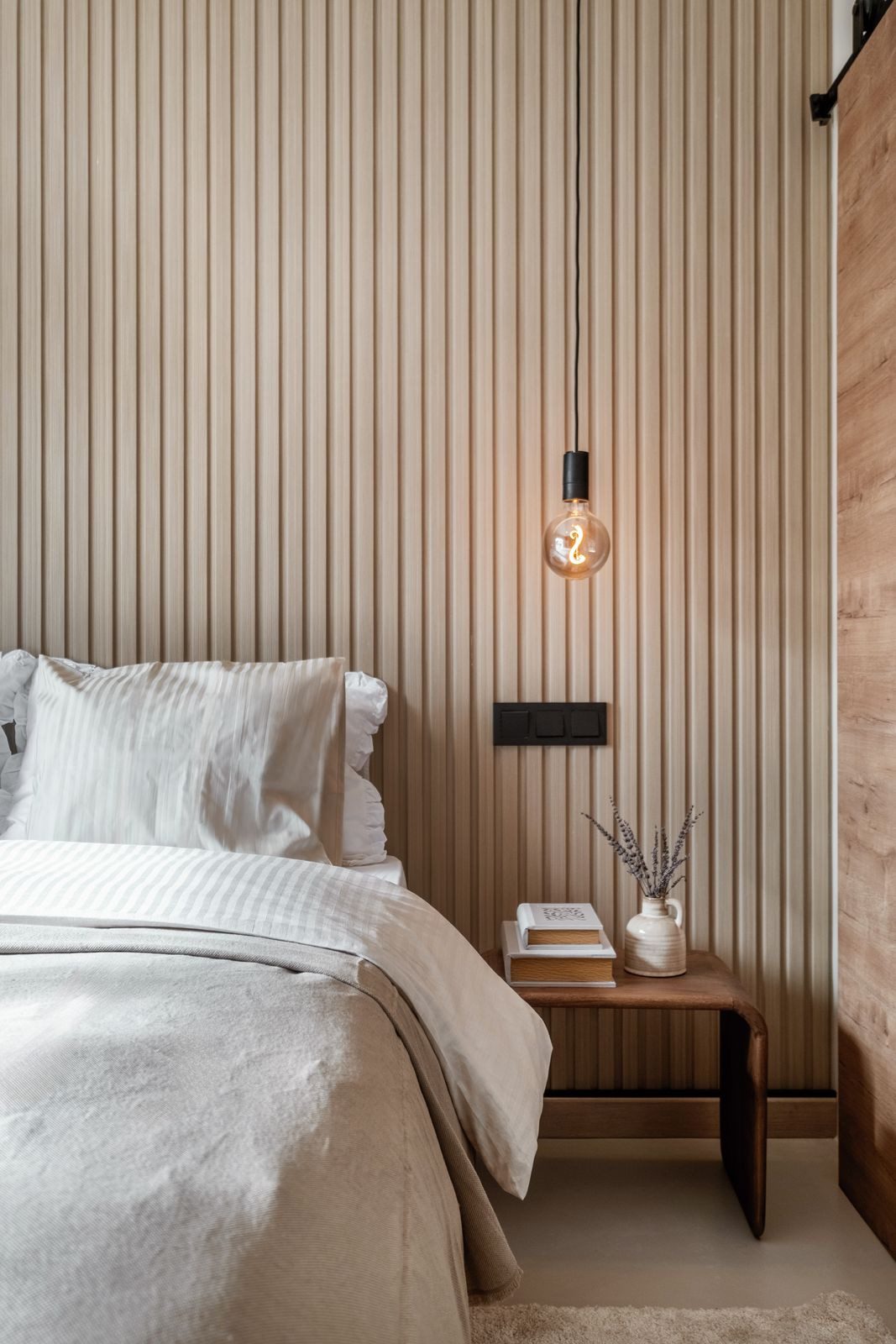 La cuisine, conçue sur mesure, est le cœur de la maison. Elle est réalisée avec des matériaux haut de gamme et des appareils électroménagers intégrés de qualité supérieure. Des textures soigneusement choisies et des tons chauds créent une atmosphère à la fois accueillante et raffinée dans toute la maison.